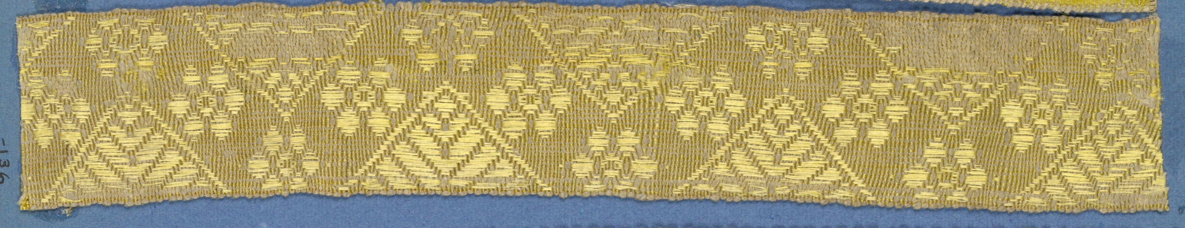 This is a Trimming. It is dated 19th century and we acquired it in 1909. Its medium is silk and its technique is woven. It is a part of the Textiles department.