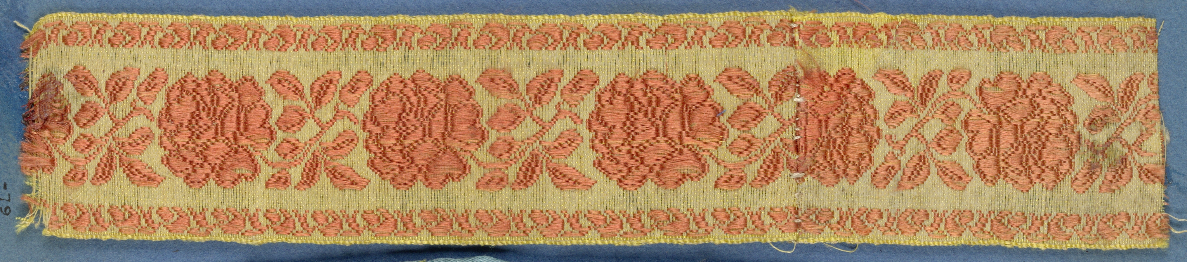 This is a Trimming. It is dated early 19th century and we acquired it in 1909. Its medium is silk and its technique is woven. It is a part of the Textiles department.