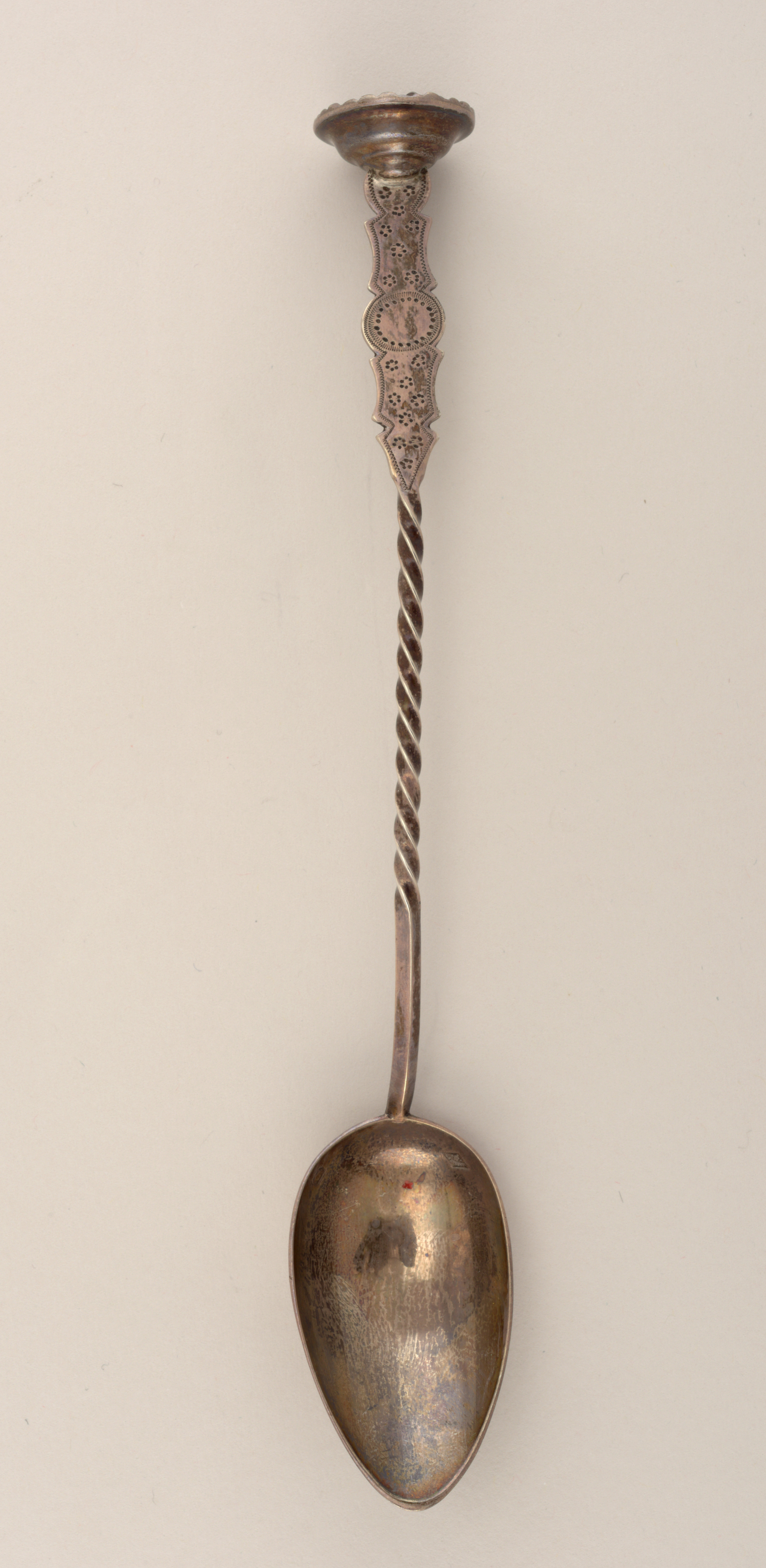 This is a spoon. It was made by Massat Freres. It is dated 19th century and we acquired it in 1909. Its medium is silver. It is a part of the Product Design and Decorative Arts department.