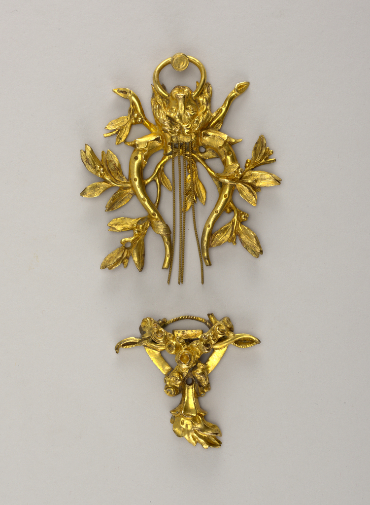 Mount; bronze (gilt); H x W x D (a): 9.6 x 8.8 x 1.3 cm (3 3/4 x 3 7/16 x 1/2 in.) H x W x D (b): 5.7 x 6 x 1.8 cm (2 1/4 x 2 3/8 x 11/16 in.); Purchased for the Museum by the Advisory Council; 1909-25-63-a,b