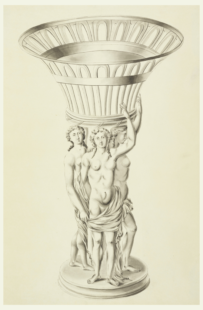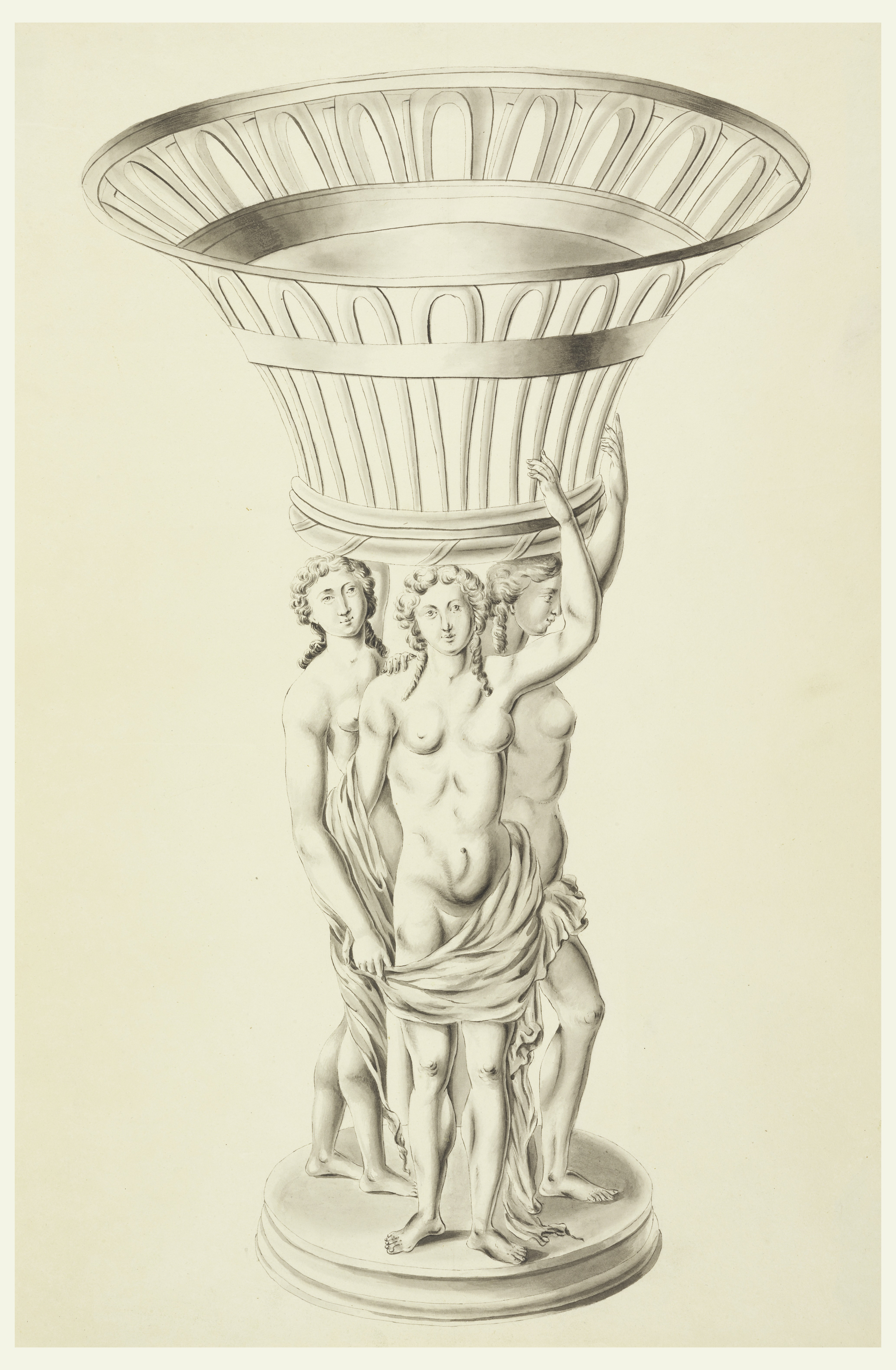 Drawing, Support for a Bowl; Designed by Joseph Anton Seethaler II (German, 1799–1868); Germany; pen and ink, brush and wash on paper; 47.7 x 31.3 cm (18 3/4 x 12 5/16 in.); Purchased for the Museum by the Advisory Council; 1911-28-329