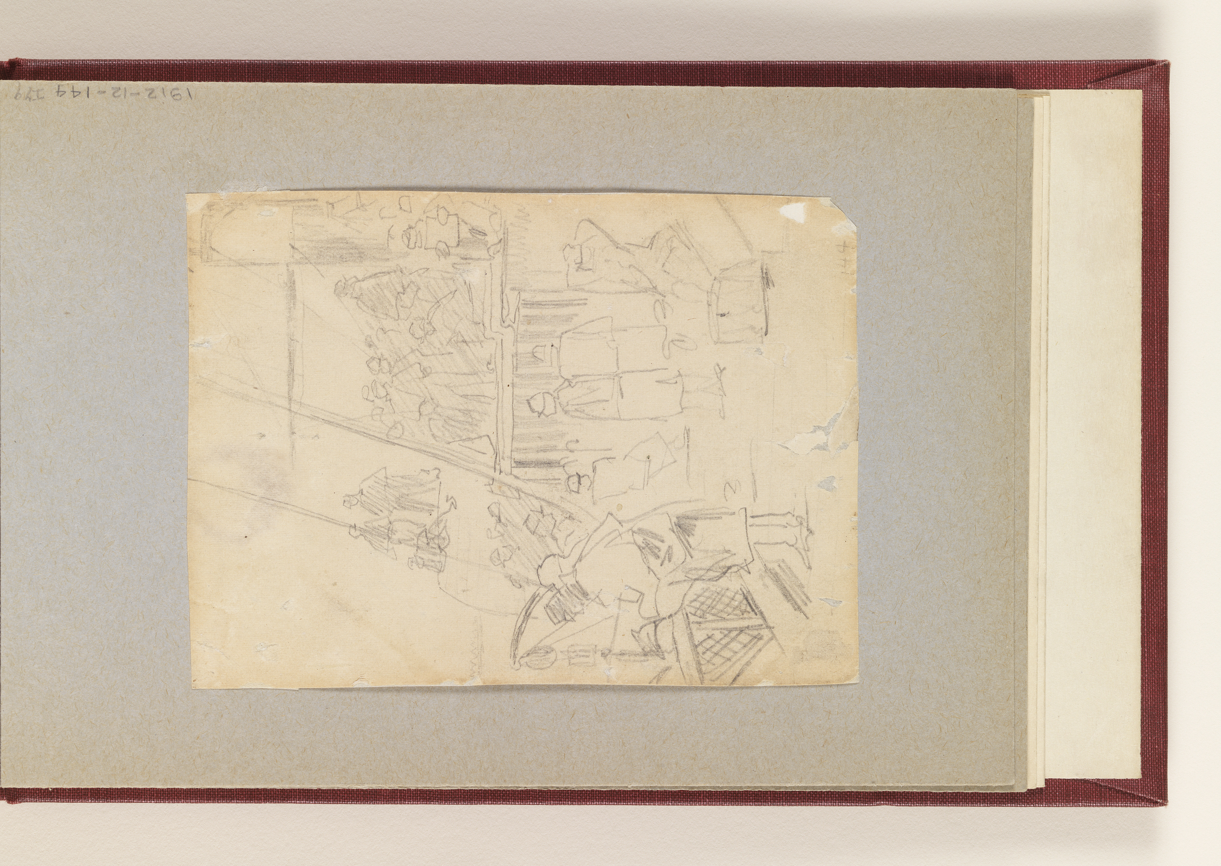 Drawing, Deck of a Side-Wheeler Army Transport; Winslow Homer (American, 1836–1910); USA; graphite on wove paper, laid down; 12.2 x 8.9 cm (4 13/16 x 3 1/2 in.); Gift of Charles Savage Homer, Jr.; 1912-12-144