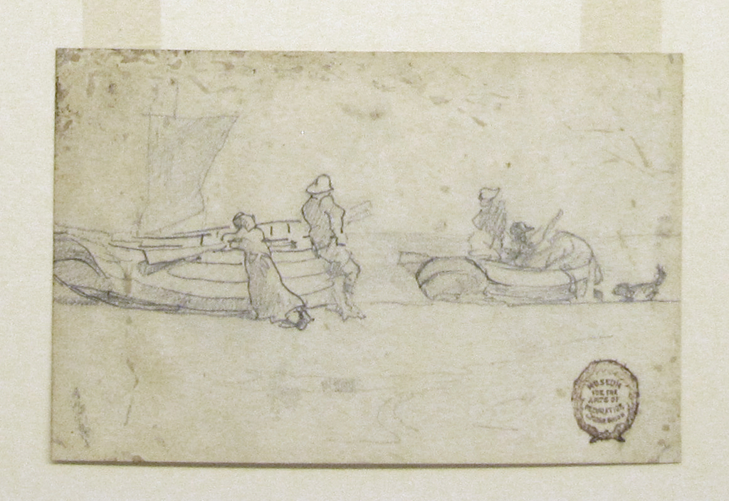 Drawing, Two Boats on Beach with Figures, Cullercoats, England