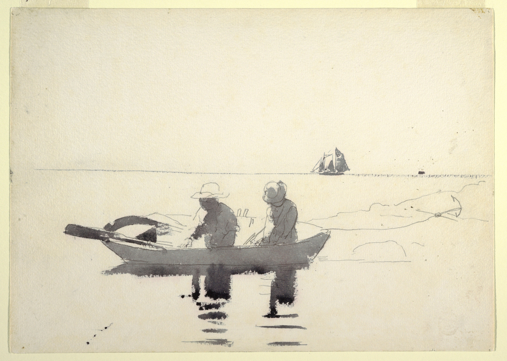 Drawing, Two Figures in a Rowboat; Winslow Homer (American, 1836–1910); USA; brush and gray wash, graphite on off-white paper; 25.3 × 35.5 cm (9 15/16 × 14 in.); Gift of Charles Savage Homer, Jr.; 1912-12-222