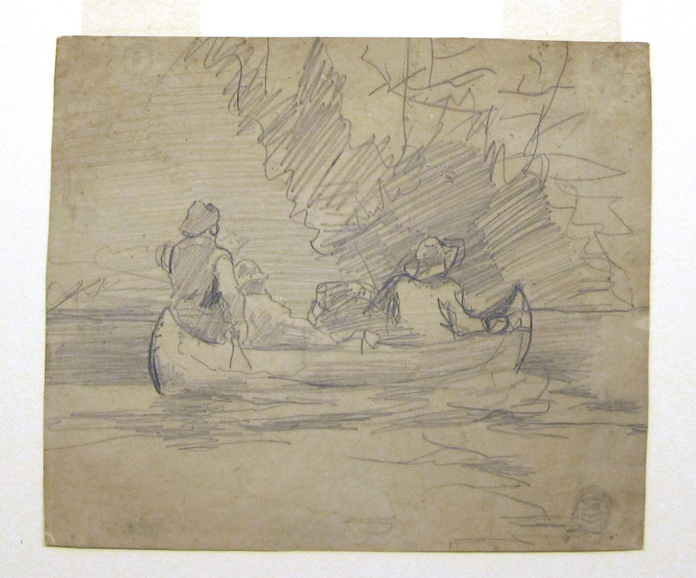 Drawing, Canoe with Three Men; Winslow Homer (American, 1836–1910); USA; graphite on paper; 18.9 x 22.4 cm (7 7/16 x 8 13/16 in.); Gift of Charles Savage Homer, Jr.; 1912-12-229