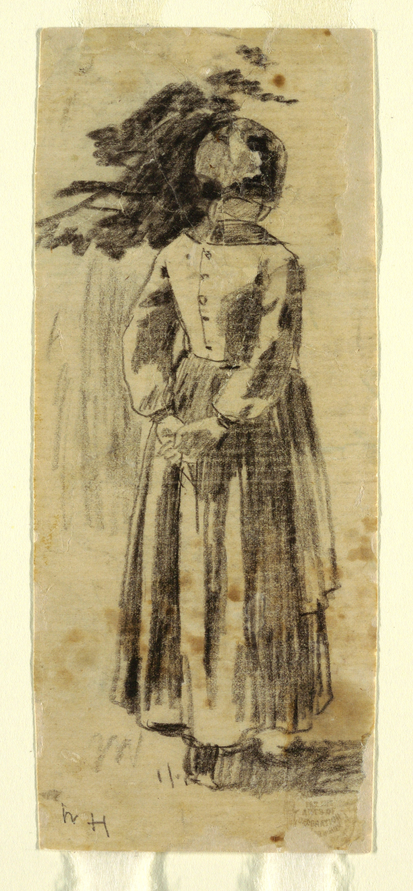 Drawing, Girl; Winslow Homer (American, 1836–1910); USA; crayon on paper; 16.8 x 7.1 cm (6 5/8 x 2 13/16 in.); Gift of Charles Savage Homer, Jr.; 1912-12-60