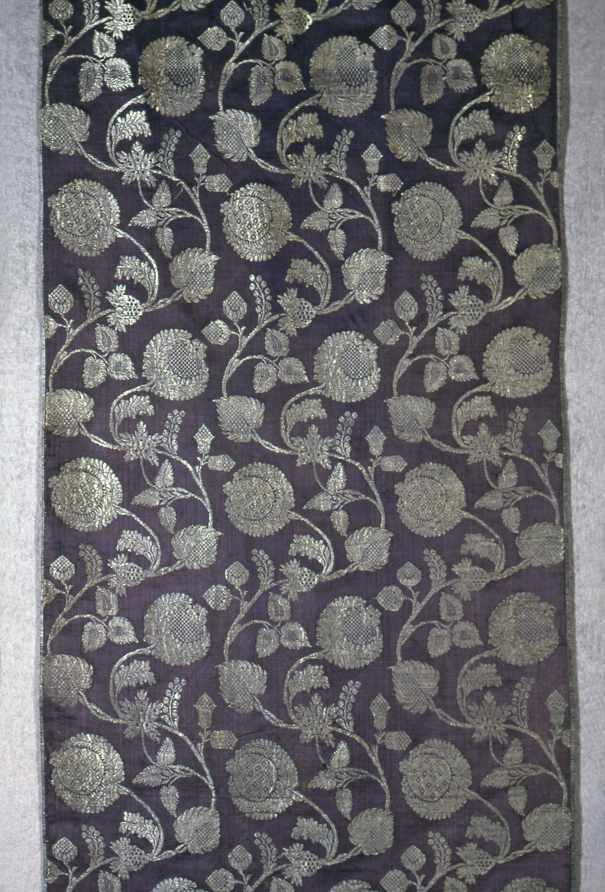 Textile (India); silk, metallic thread; Warp x Weft: 111.1 x 51.9 cm (43 3/4 x 20 7/16 in.); Gift of Leverton Harris; 1913-13-3