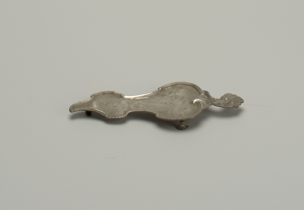 Candle Snuffer Stand; pewter; H x W x D: 2 x 25 x 10.3 cm (13/16 x 9 13/16 x 4 1/16 in.); Gift of Eleanor and Sarah Hewitt; 1914-21-5