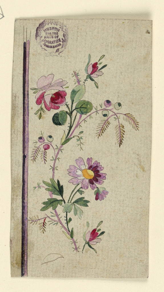Drawing, Design for an Embroidery Motif; France; pen and ink, brush and gouache on paper; 12.1 × 6.6 cm (4 3/4 × 2 5/8 in.); Gift of Eleanor and Sarah Hewitt; 1914-21-59