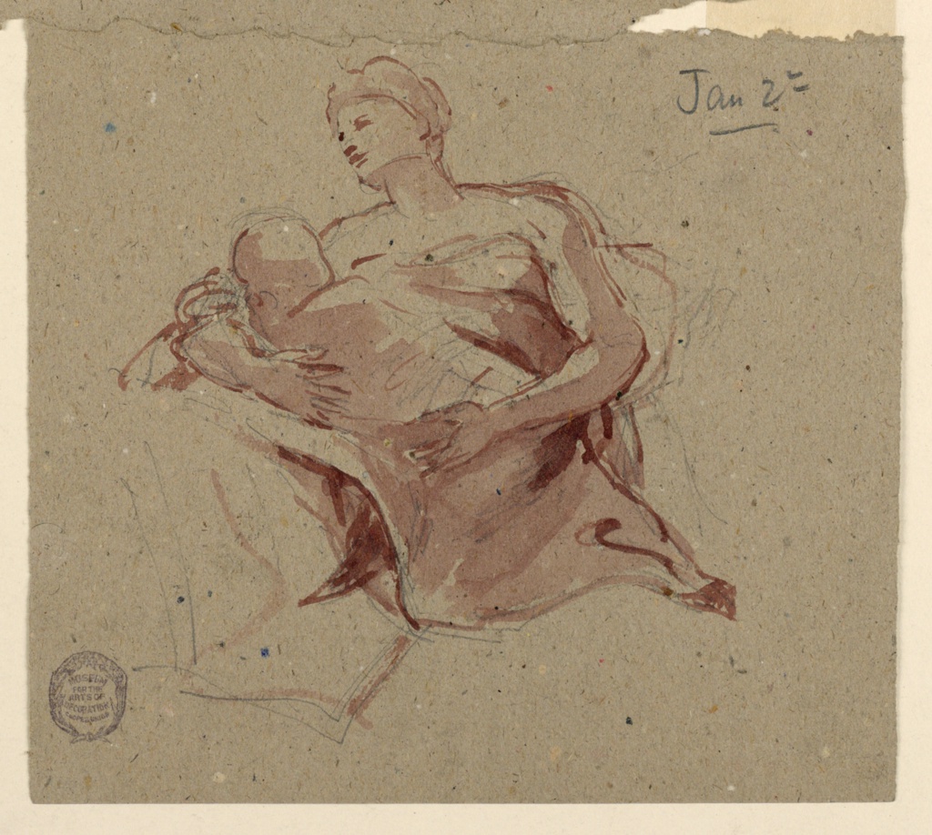 Drawing, Study for "Charity," St. Bartholomew's Church, New York, NY; Francis Augustus Lathrop (American, 1849 - 1909); USA; brush and watercolor, graphite on paper; 16.2 × 17.5 cm (6 3/8 × 6 7/8 in.); 1914-38-11