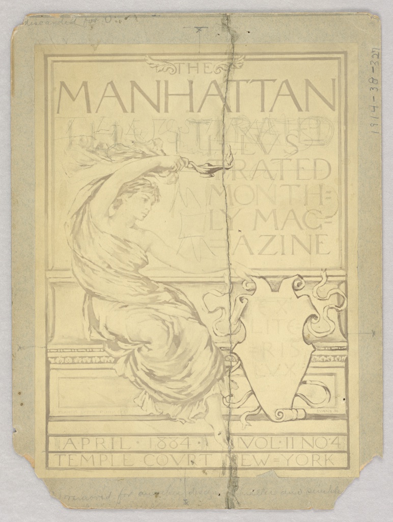 Drawing, Cover of Manhattan Illustrated Magazine, April 1884, with Corrections