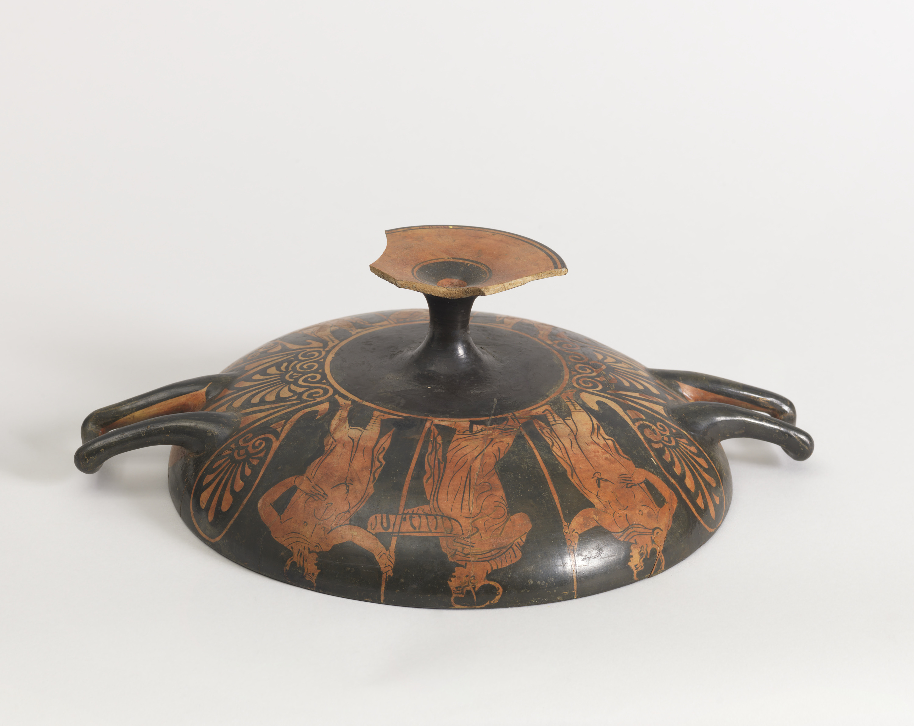 This is a Kylix. It is dated ca. 440 BC and we acquired it in 1915. Its medium is glazed terra-cotta. It is a part of the Product Design and Decorative Arts department.
