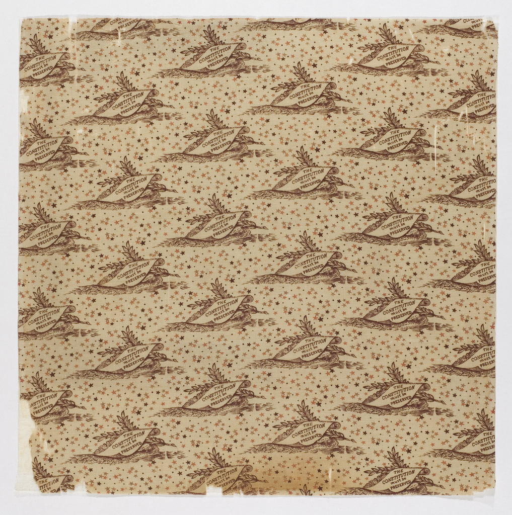 Fragment, The Constitution Must Be Preserved; USA; cotton; H x W: 29.5 x 29.5 cm (11 5/8 x 11 5/8 in.); Gift of Mrs. Frederick F. Thompson; 1915-30-2