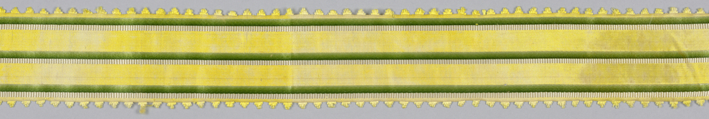 This is a Ribbon. It is dated mid-19th century and we acquired it in 1916. Its medium is silk. It is a part of the Textiles department.