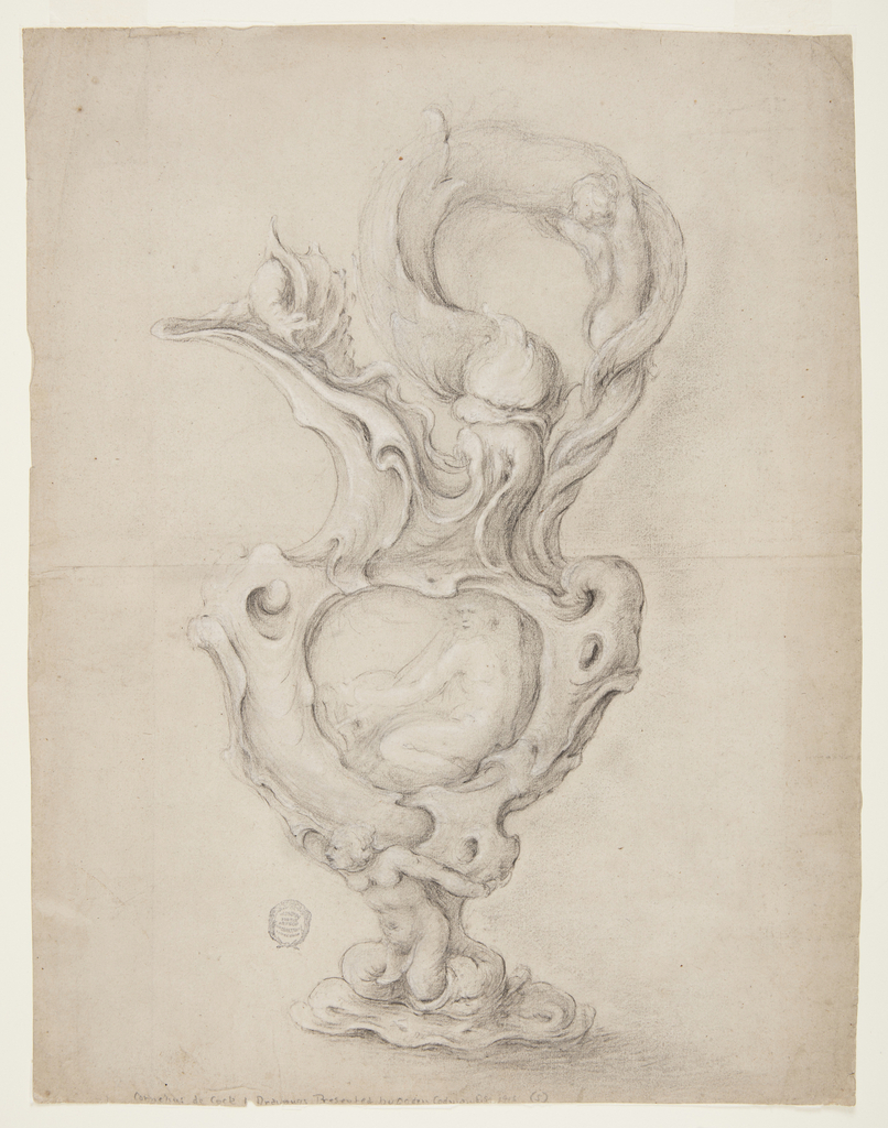 Drawing, Design for an Ewer; Circle of Jan Lutma (Dutch, ca. 1584 - 1669); Netherlands; black and white chalk on beige laid paper ; H x W: 44.2 × 30.3 cm (17 3/8 × 11 15/16 in.); Gift of Ogden Codman; 1916-9-5