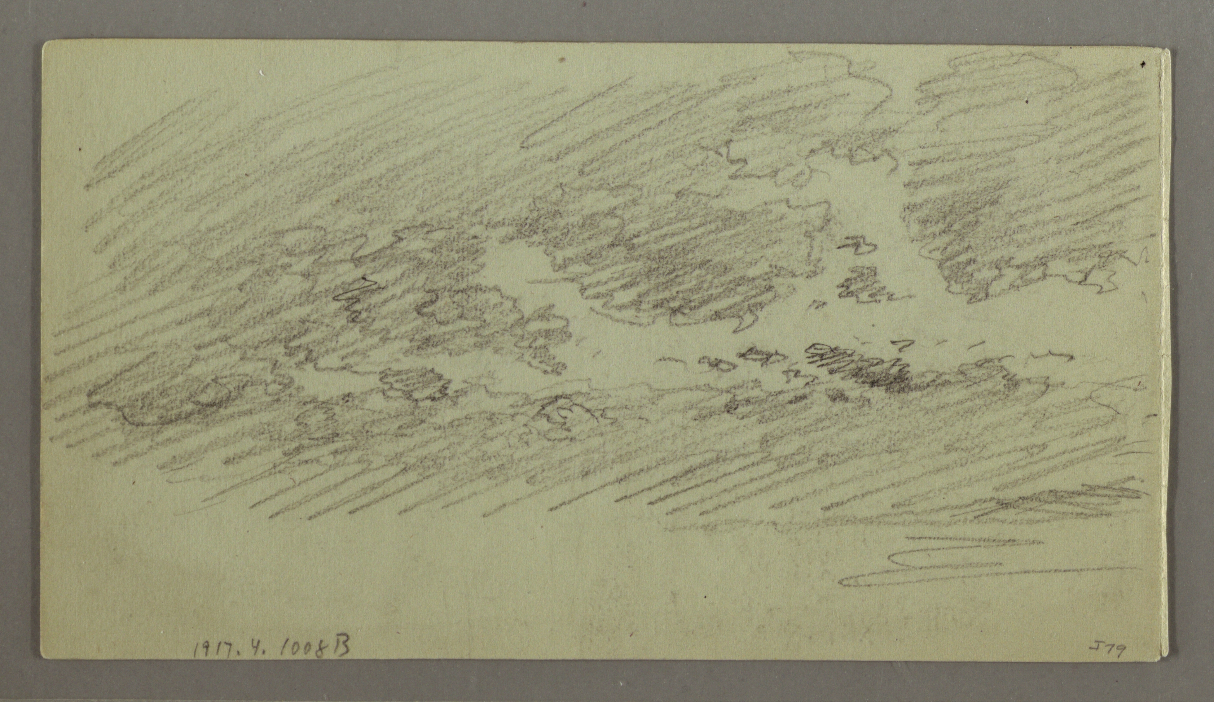 This is a Drawing. It was created by Frederic Edwin Church. It is dated 1860 - 1880 and we acquired it in 1917. Its medium is graphite on grey-green laid paper; verso: graphite. It is a part of the Drawings, Prints, and Graphic Design department.