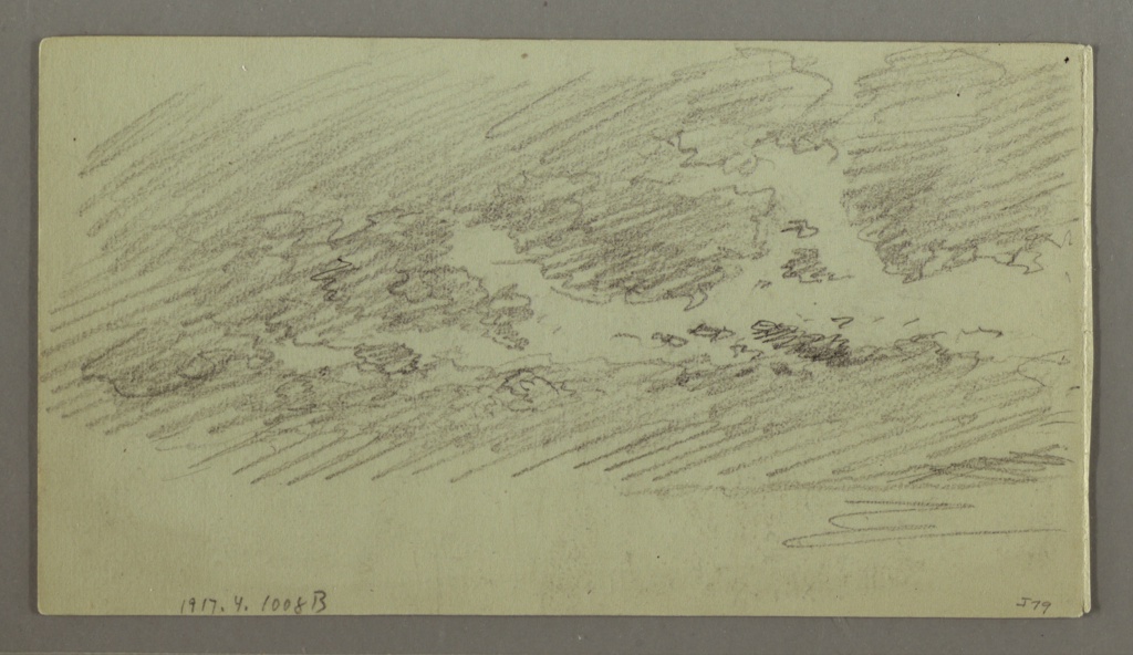 Drawing, The Sun and Sky; Frederic Edwin Church (American, 1826–1900); USA; graphite on grey-green laid paper; verso: graphite; 12 × 22 cm (4 3/4 × 8 11/16 in.); Gift of Louis P. Church; 1917-4-1008-b