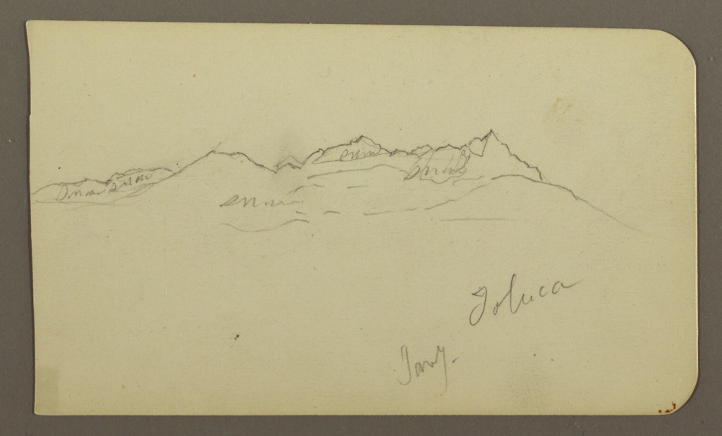 Drawing, Mountain Range, Toluca; Verso: Steeple, Mountain Ranges, Toluca; Frederic Edwin Church (American, 1826–1900); USA; graphite on off-white paper; verso: graphite; 10.2 × 17.3 cm (4 × 6 13/16 in.); Gift of Louis P. Church; 1917-4-1067-a