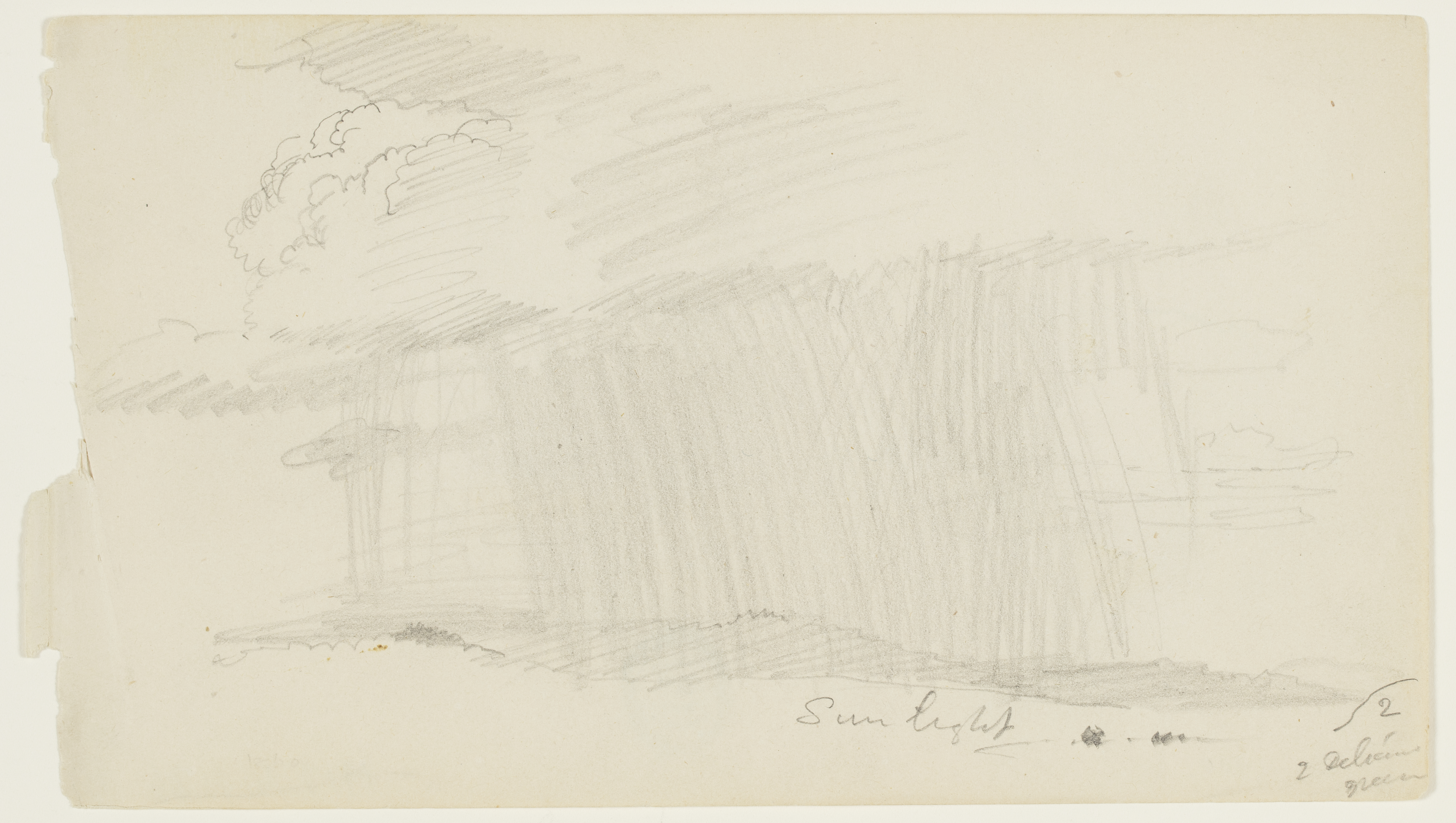 Drawing, Deluge over Mt. Desert Island, Maine; Frederic Edwin Church (American, 1826–1900); USA; graphite on white wove paper; 10.8 × 19.3 cm (4 1/4 × 7 5/8 in.); Gift of Louis P. Church; 1917-4-1136-b