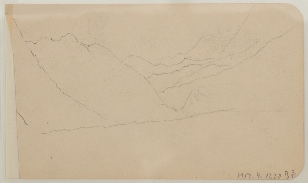 Drawing, Rugged Mountain Peak, Mexico; Frederic Edwin Church (American, 1826–1900); USA; graphite on off-white wove paper; verso: graphite; 10.1 × 17.1 cm (4 × 6 3/4 in.); Gift of Louis P. Church; 1917-4-1230-b