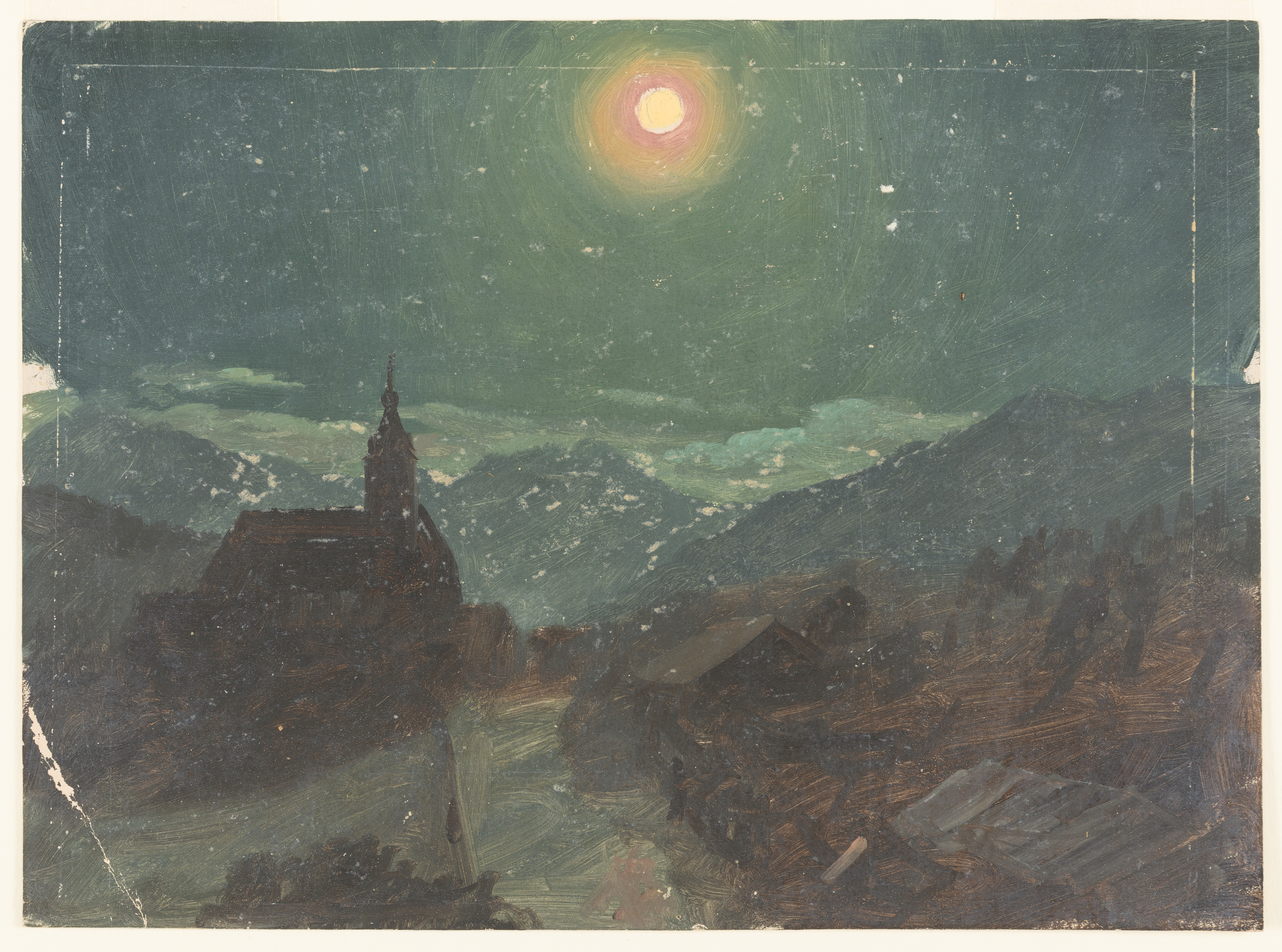 <ref name=CH>{{cite web |url=https://www-4.collection.cooperhewitt.org/objects/18194111/ |title=Drawing, Moonlight over an Alpine Village |author=Cooper Hewitt, Smithsonian Design Museum |accessdate=20 December 2025 |publisher=Smithsonian Institution}}</ref>