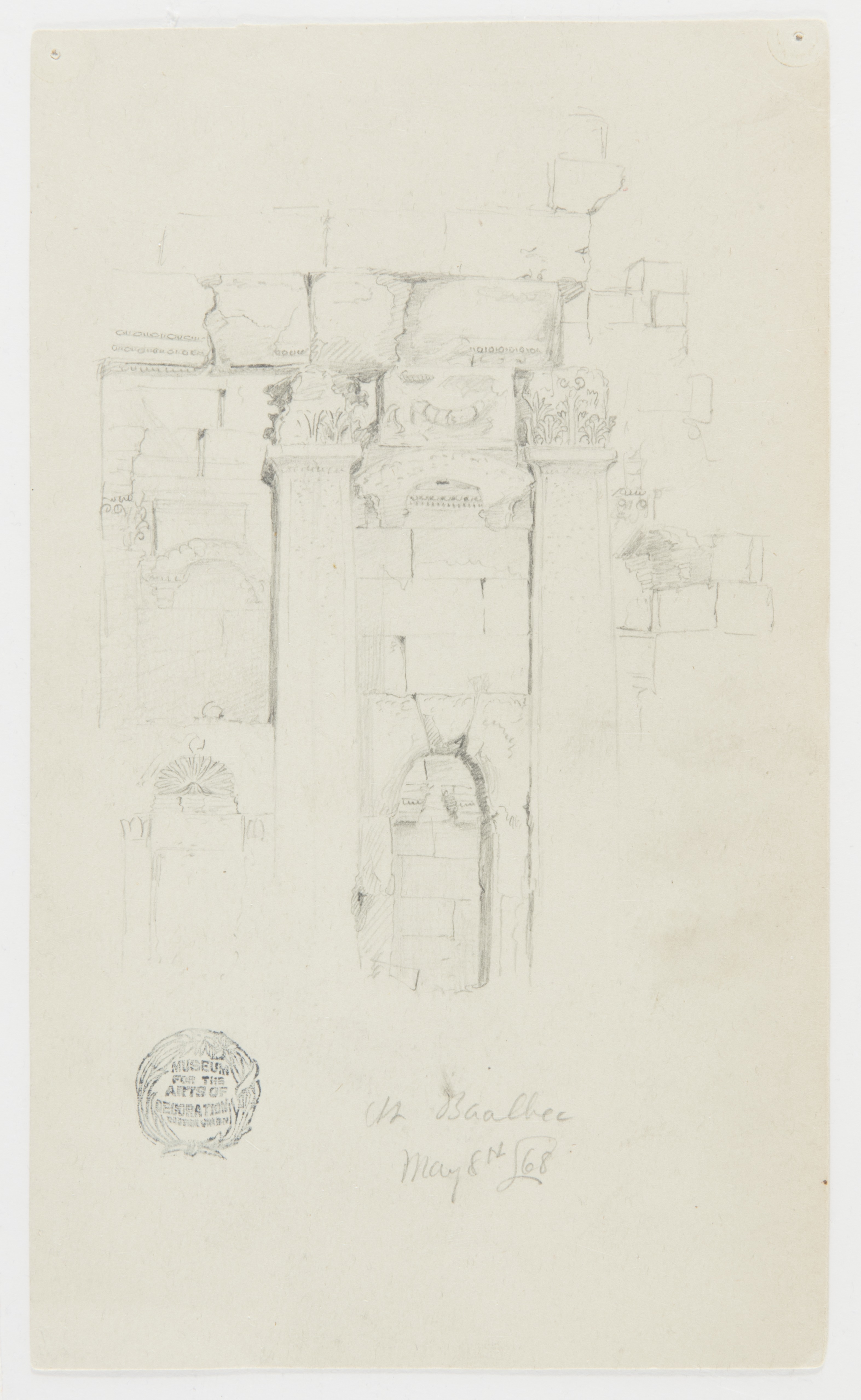 <ref name=CH>{{cite web |url=https://www-4.collection.cooperhewitt.org/objects/18194743/ |title=Drawing, Architectural Detail at the Temple of Bacchus in Baalbek, Lebanon |author=Cooper Hewitt, Smithsonian Design Museum |accessdate=20 December 2025 |publisher=Smithsonian Institution}}</ref>