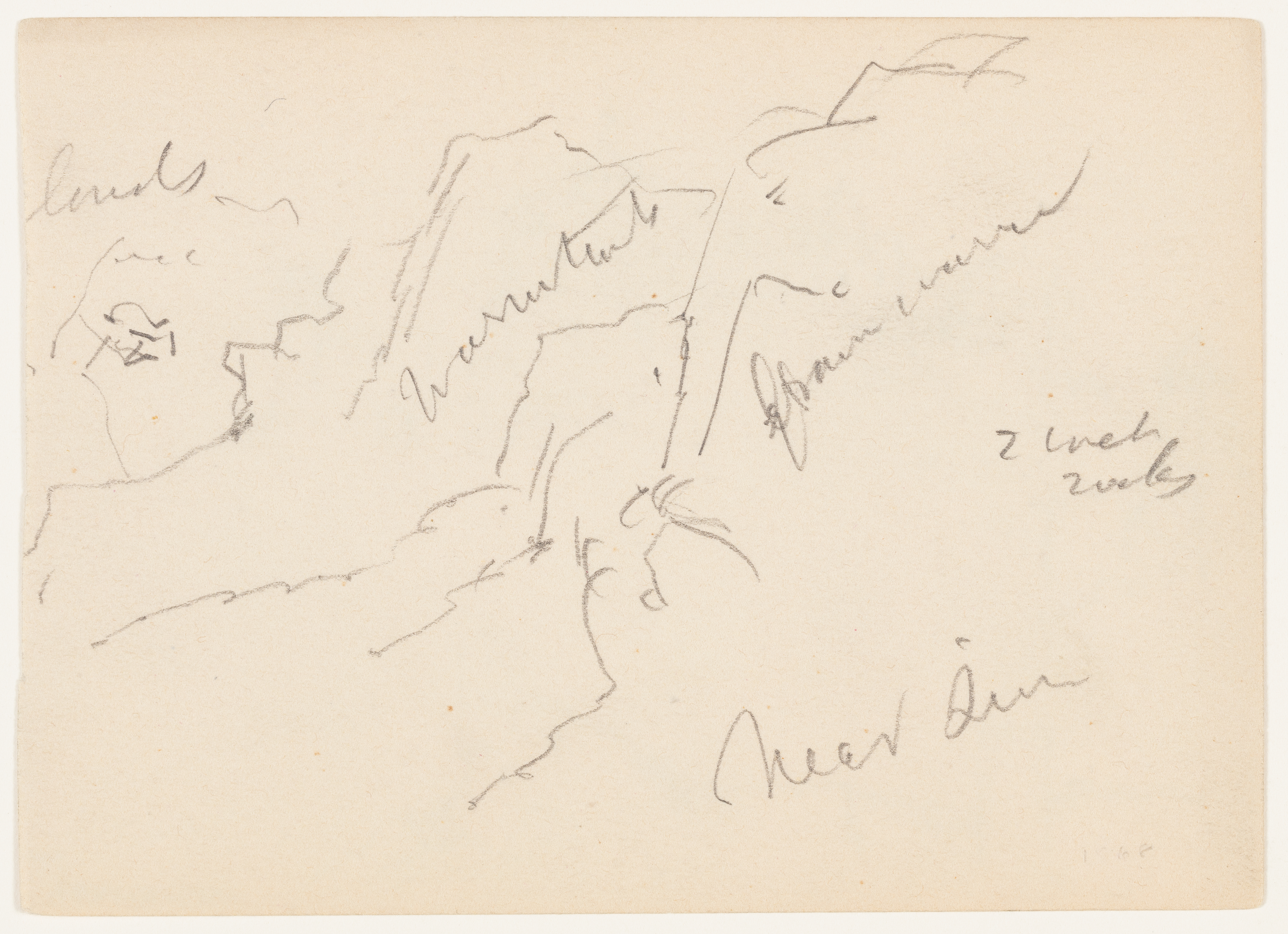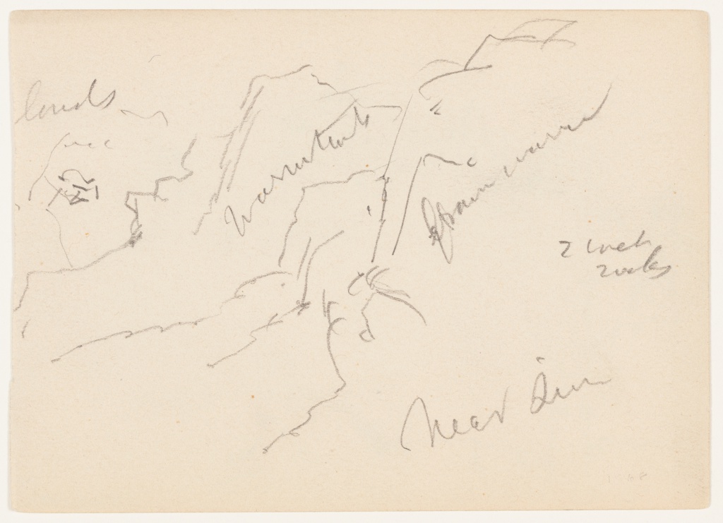Inscribed: in graphite, upper left: lands;in graphite, center: warm tint / 2 / brown warm; in graphite, center right: 2 wet rocks; in graphite, lower right: Near Sion