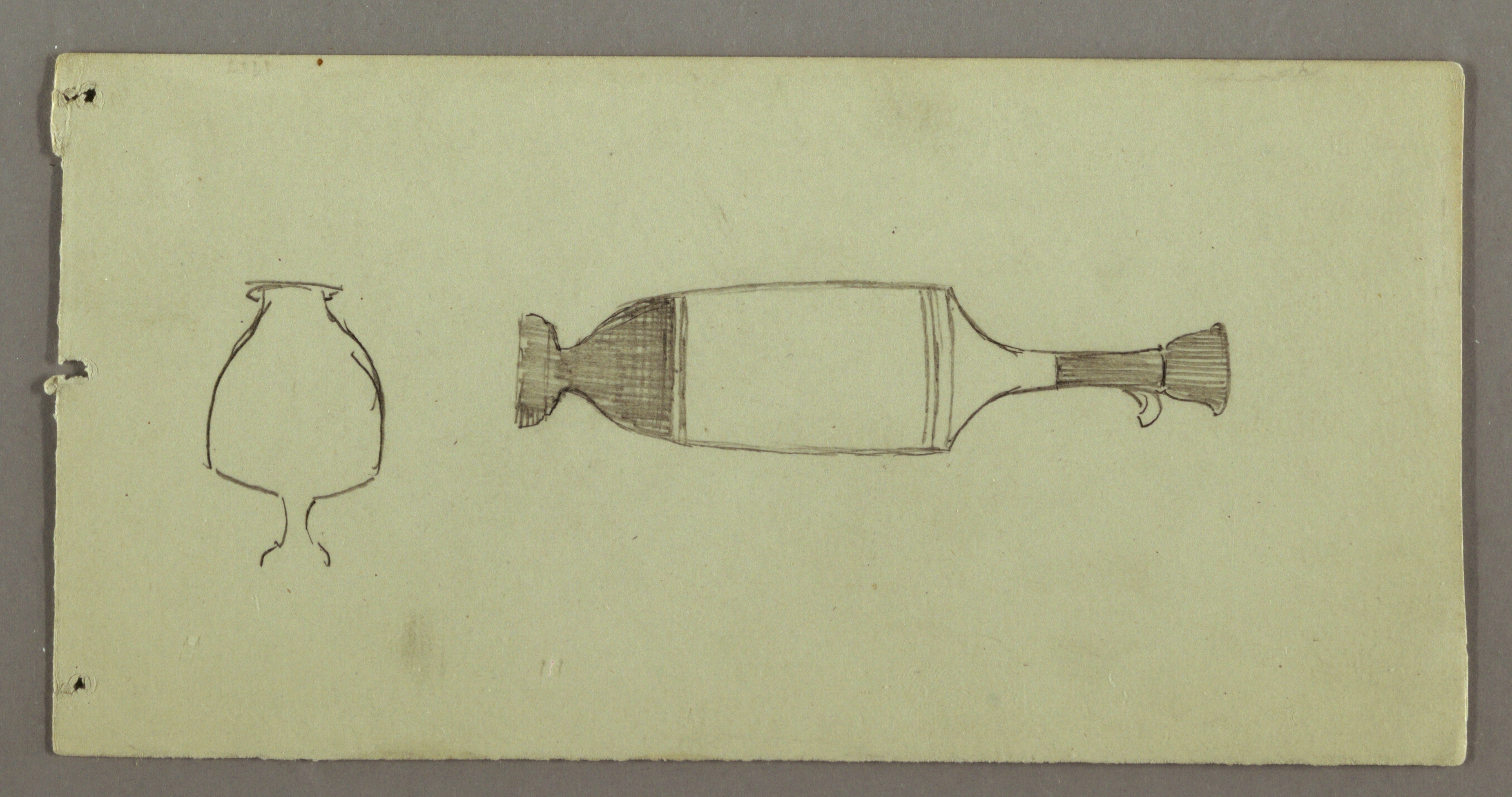 Drawing, Two Amphorae from the Museum at Athens, Greece; Frederic Edwin Church (American, 1826–1900); USA; graphite on grey-green wove paper; verso: graphite; 20.8 × 10.4 cm (8 3/16 × 4 1/8 in.); Gift of Louis P. Church; 1917-4-1506