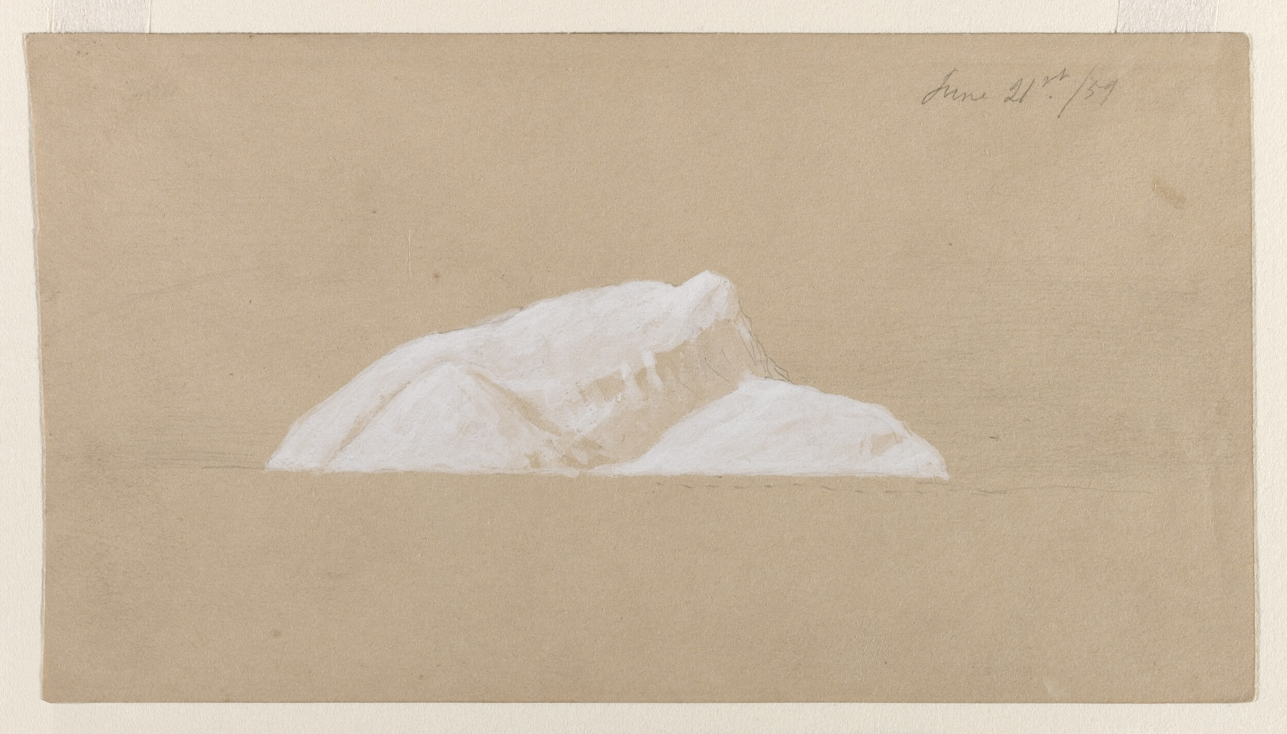 Drawing, Iceberg near Cape Race, Canada; Frederic Edwin Church (American, 1826–1900); USA; graphite and white gouache on light brown paper; 11.5 × 20.9 cm (4 1/2 × 8 1/4 in.); Gift of Louis P. Church; 1917-4-319-a