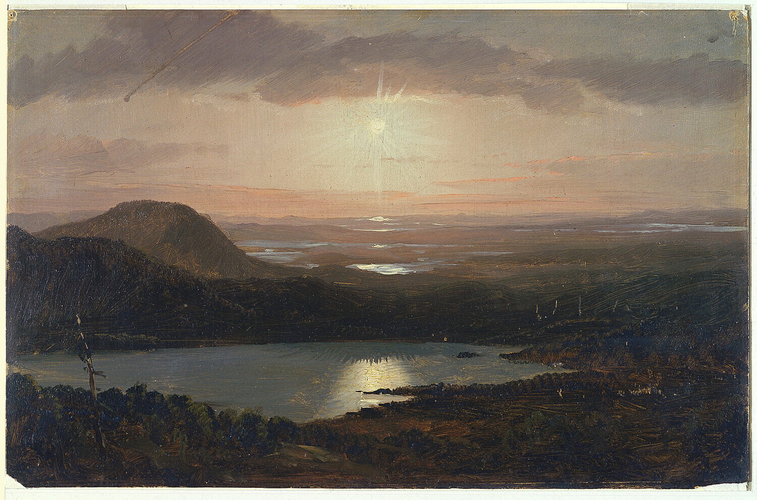 Drawing, Eagle Lake Viewed from Cadillac Mountain, Mt. Desert Island, Maine; Frederic Edwin Church (American, 1826–1900); USA; oil and graphite on paperboard; verso: graphite; 29.4 × 44.5 cm (11 9/16 × 17 1/2 in.); Gift of Louis P. Church; 1917-4-324