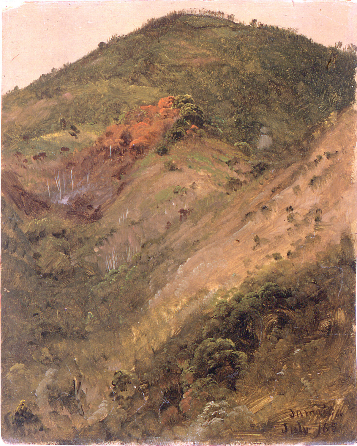 Drawing, Steep Hillside, Jamaica; Frederic Edwin Church (American, 1826–1900); USA; brush and oil, graphite on paperboard; 30.3 × 24.5 cm (11 15/16 × 9 5/8 in.); Gift of Louis P. Church; 1917-4-352-b