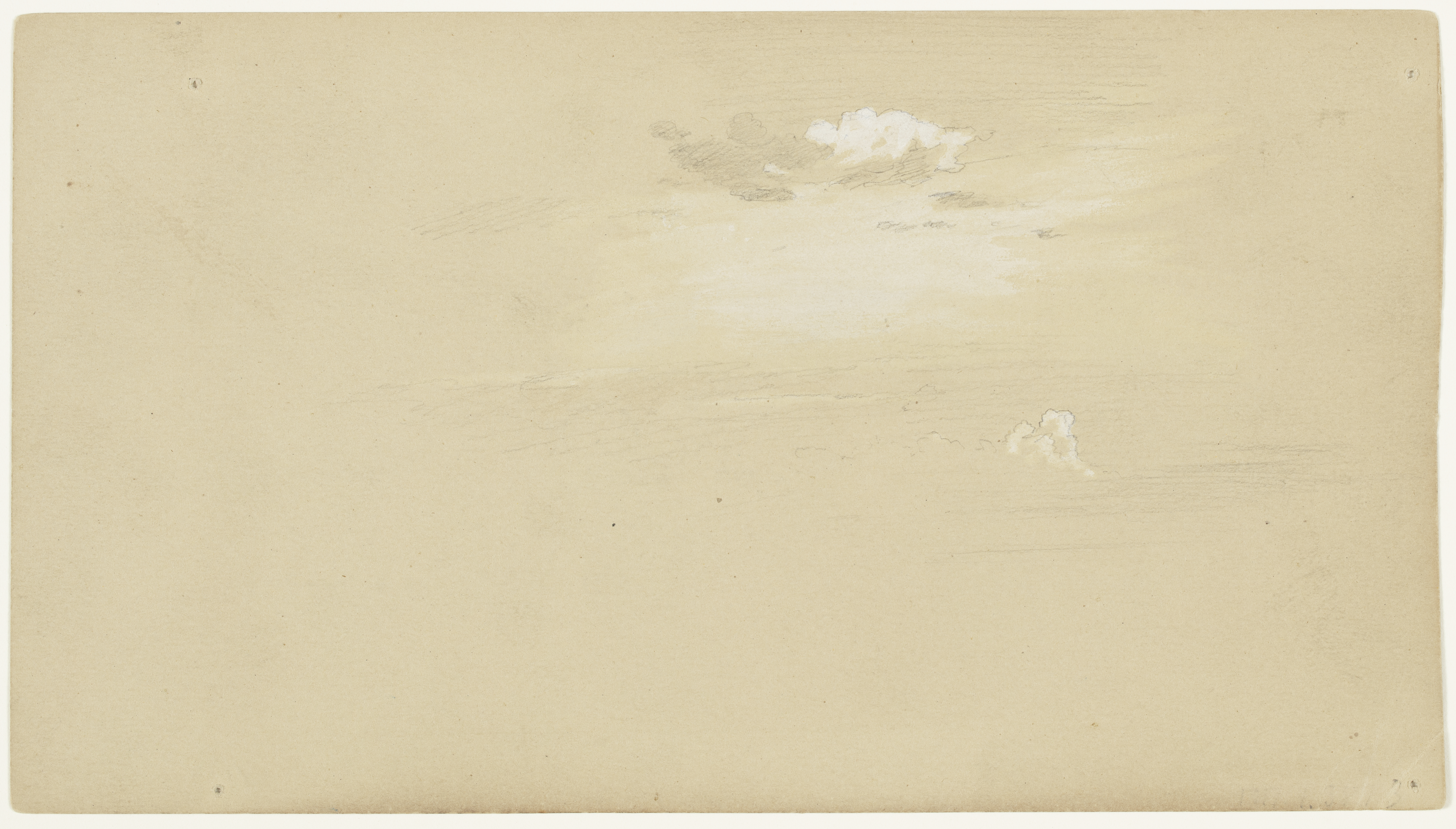 Drawing, Clouds, Jamaica; Frederic Edwin Church (American, 1826–1900); USA; graphite and white gouache on light brown wove paper; verso: graphite and white gouache; 12.3 × 21.9 cm (4 13/16 × 8 5/8 in.); Gift of Louis P. Church; 1917-4-387-b