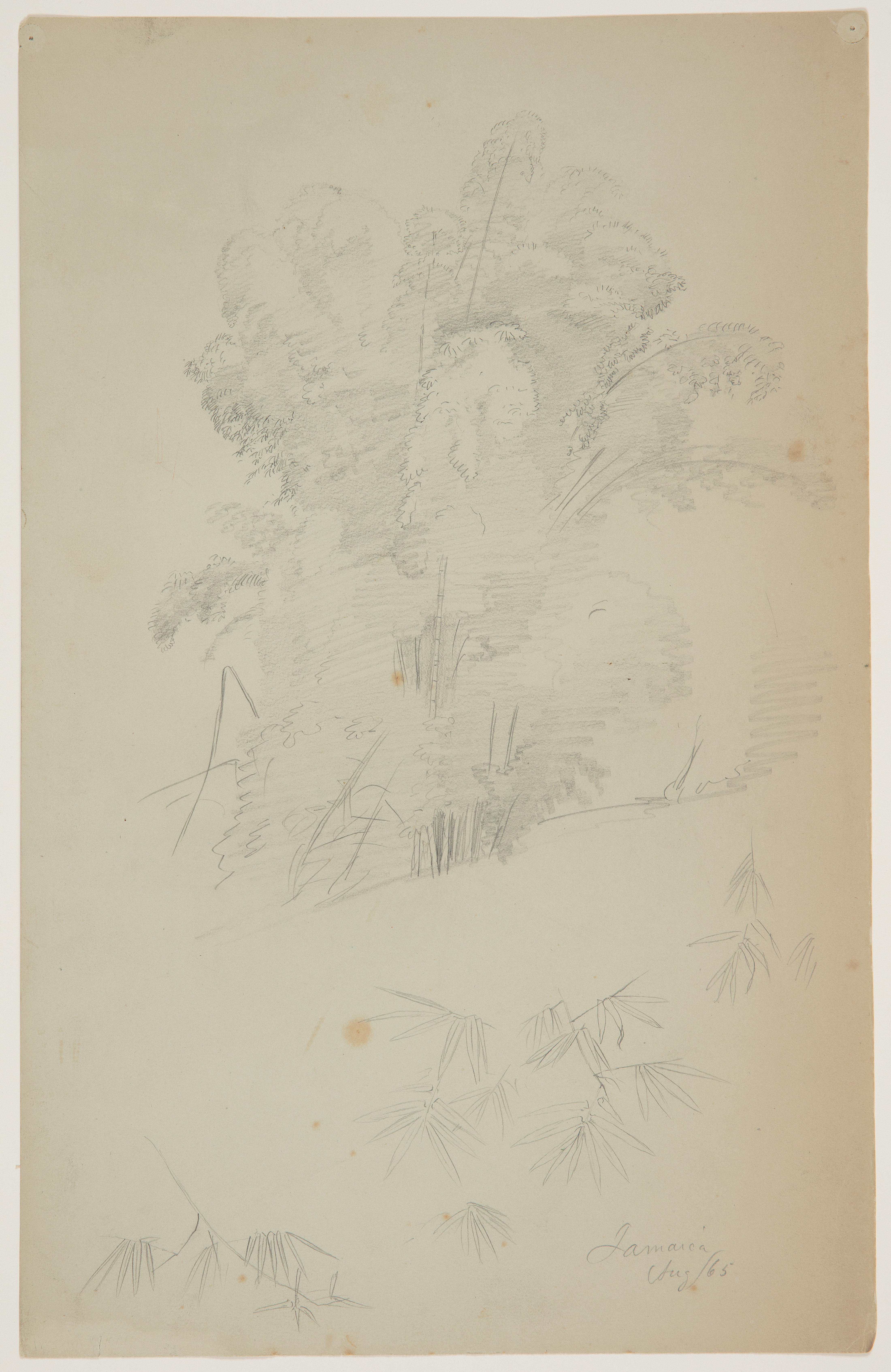 Drawing, Bamboo Grove, Jamaica; Frederic Edwin Church (American, 1826–1900); Jamaica; graphite on gray wove paper; 42.9 × 27.4 cm (16 7/8 × 10 13/16 in.); Gift of Louis P. Church; 1917-4-438-a