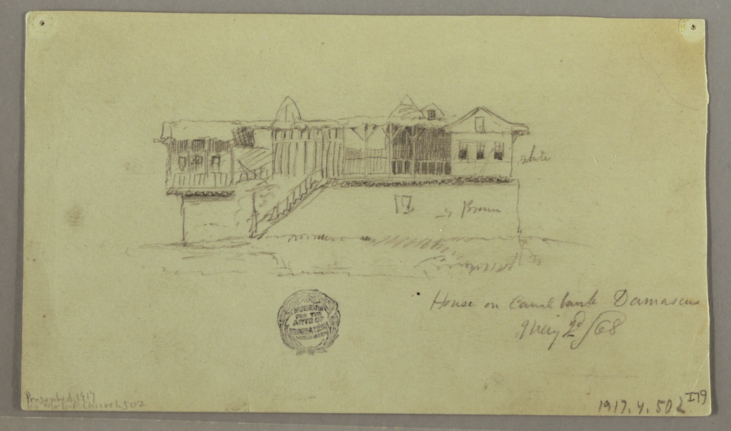 Drawing, Damascus, Syria; Frederic Edwin Church (American, 1826–1900); USA; graphite on grey-green laid paper; verso: graphite; 12.3 × 21.3 cm (4 13/16 × 8 3/8 in.); Gift of Louis P. Church; 1917-4-502