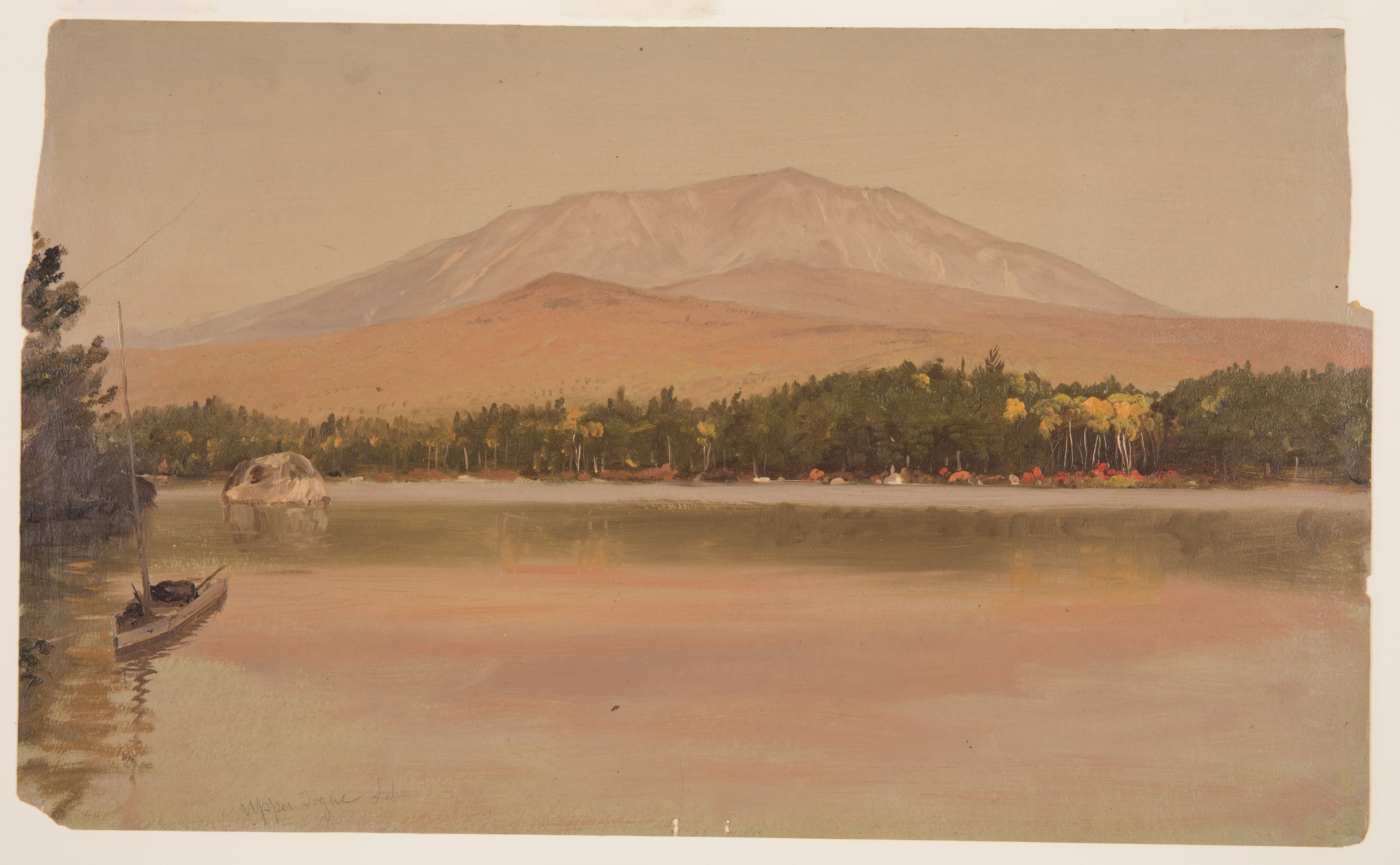 Drawing, Mt. Katahdin from Upper Togue Pond, Maine; Frederic Edwin Church (American, 1826–1900); USA; oil and graphite on paperboard; 30.6 × 50.6 cm (12 1/16 × 19 15/16 in.); Gift of Louis P. Church; 1917-4-641