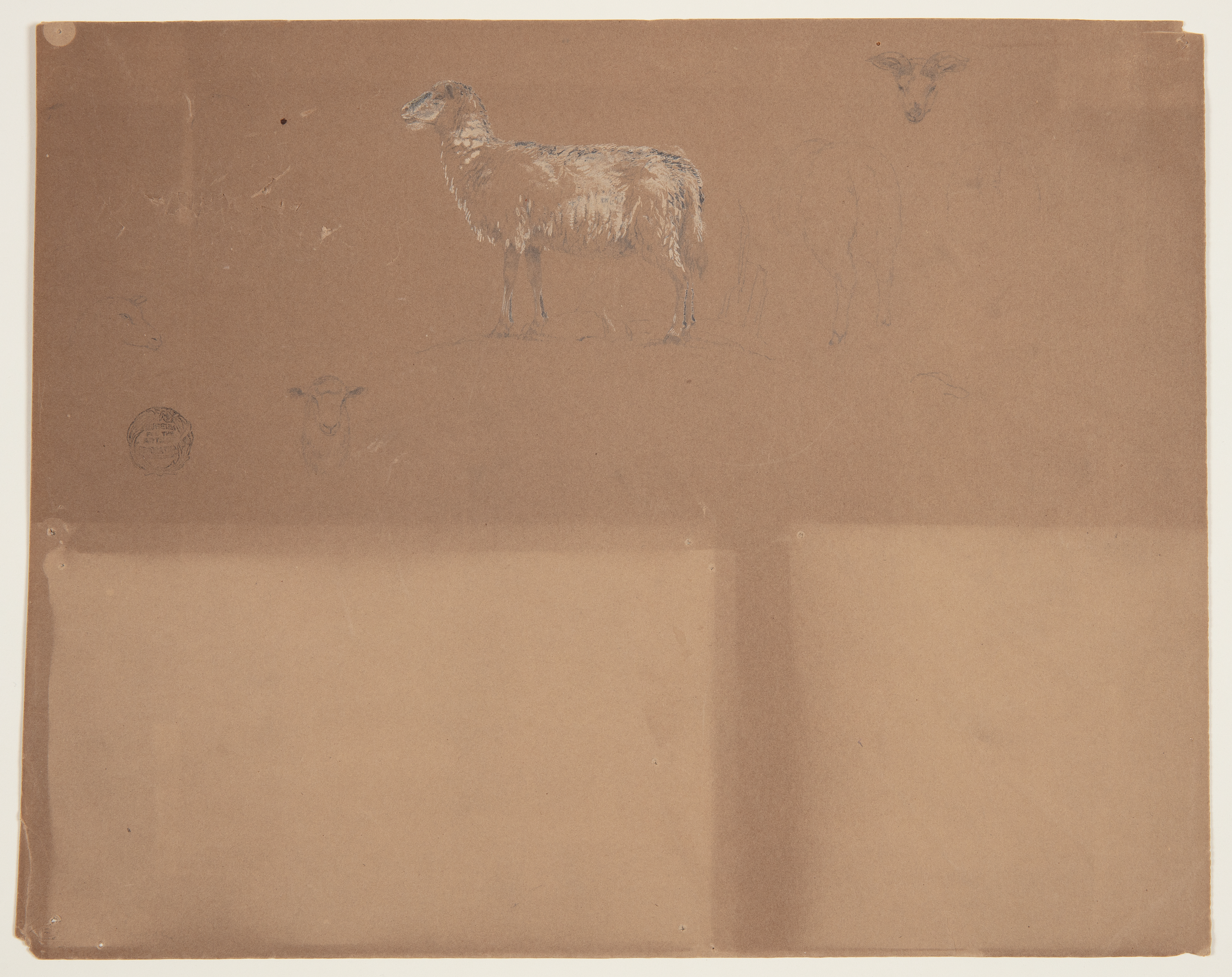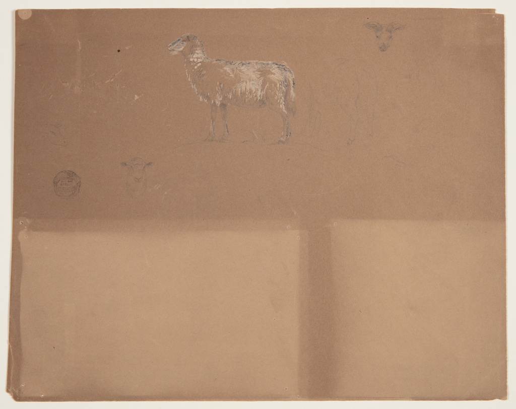 Drawing, Sketches of Sheep and a Ram, Colombia or Ecuador; Frederic Edwin Church (American, 1826–1900); graphite, brush and white gouache and oxidized white gouache on brown wove paper; 27.4 × 34.4 cm (10 13/16 × 13 9/16 in.); Gift of Louis P. Church; 1917-4-699