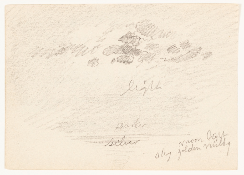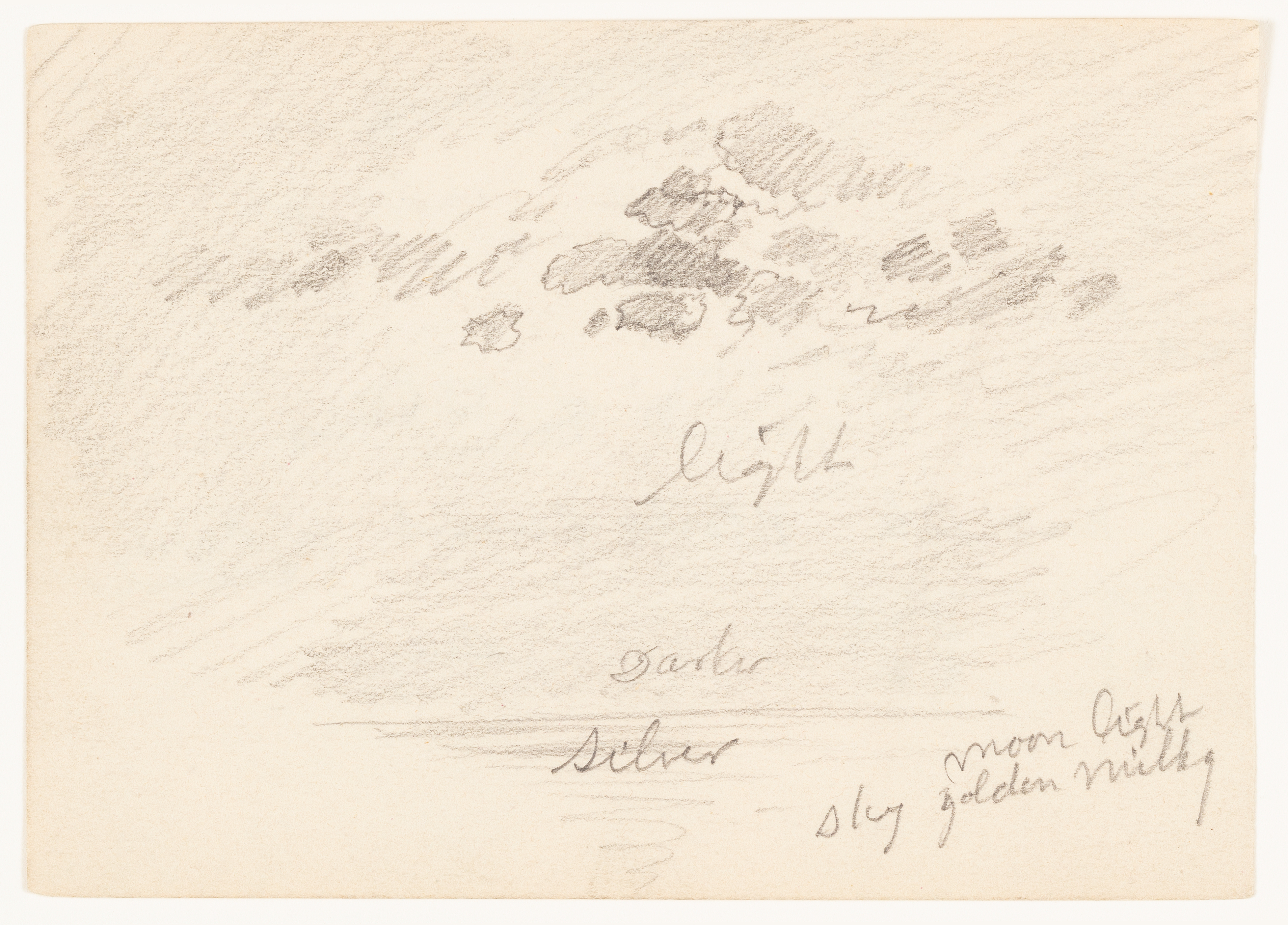 Drawing, Moonlit Sky at Sea, Egypt; Frederic Edwin Church (American, 1826–1900); Egypt; graphite on white wove paper; verso: graphite; 8.6 × 12.2 cm (3 3/8 × 4 13/16 in.); Gift of Louis P. Church; 1917-4-72