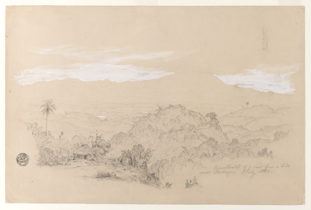 Inscribed: in graphite, lower right: Recollection of a view from a hill / near Cartago - July - 1853 -