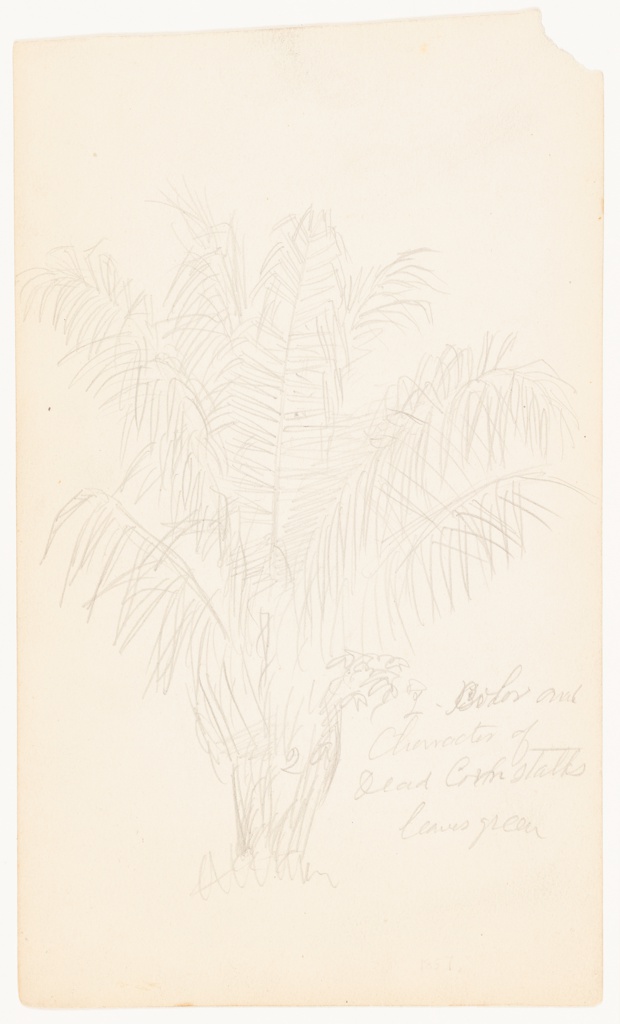 Drawing, Botanical Sketch of a Palm Tree, Ecuador; Frederic Edwin Church (American, 1826–1900); USA; graphite on off-white wove paper; 10.9 × 18.5 cm (4 5/16 × 7 5/16 in.); Gift of Louis P. Church; 1917-4-837-b