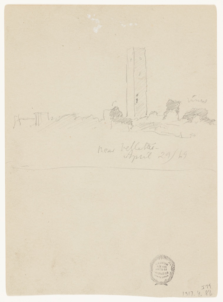This is a Drawing. It was created by Frederic Edwin Church. It is dated April 29, 1869 and we acquired it in 1917. Its medium is graphite on brown laid paper; verso: graphite. It is a part of the Drawings, Prints, and Graphic Design department.