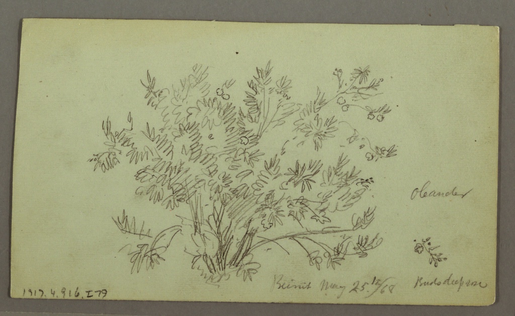 Inscribed: in graphite, upper left: Larnaca / Cyprus / May 27th /68; in graphite, verso center right: Oleander; in graphite, verso lower right: Beirut May 25th /68 / Buds deep rose