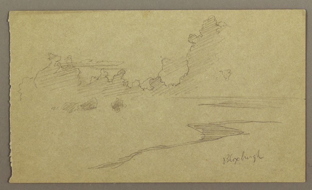 Drawing, View of the Palisadoes from Bloxburgh, Jamaica; Frederic Edwin Church (American, 1826–1900); USA; graphite on gray wove paper; 11.5 × 19.7 cm (4 1/2 × 7 3/4 in.); Gift of Louis P. Church; 1917-4-976-a