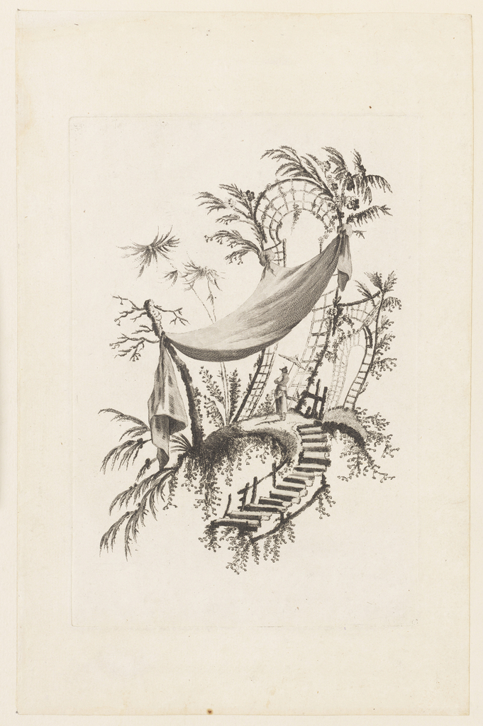 Print, Figure Under Tent, from "Recueil des Tentes Chinoises"; Designed by Jean-Baptiste Pillement (French, 1728–1808); France; etching on paper; Gift of Eleanor and Sarah Hewitt; 1920-36-282
