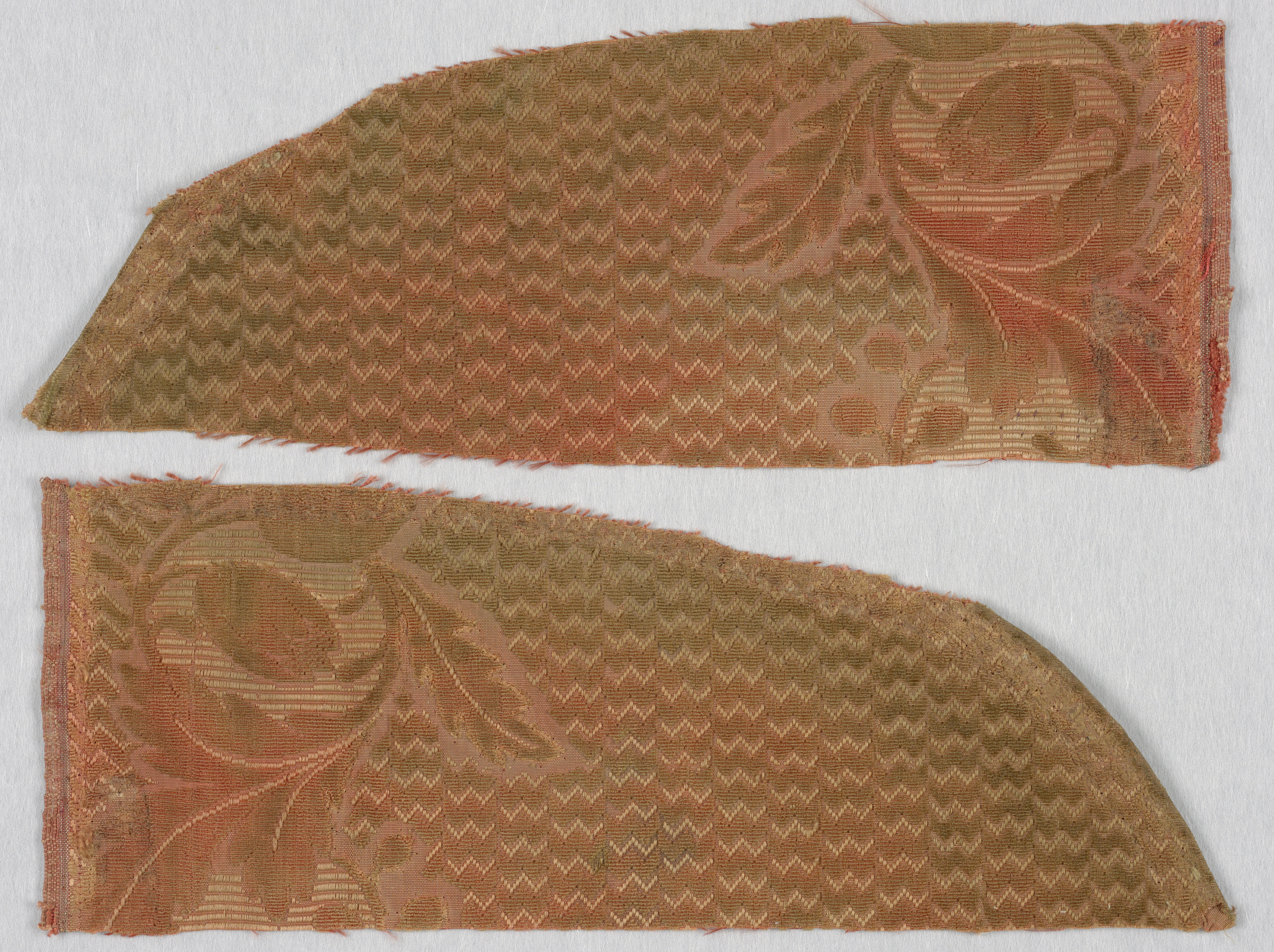 Fragments (France); silk; H x W: 9.5 x 50.2 cm (3 3/4 x 19 3/4 in.); Gift of Eleanor and Sarah Hewitt; 1921-22-25-a,b