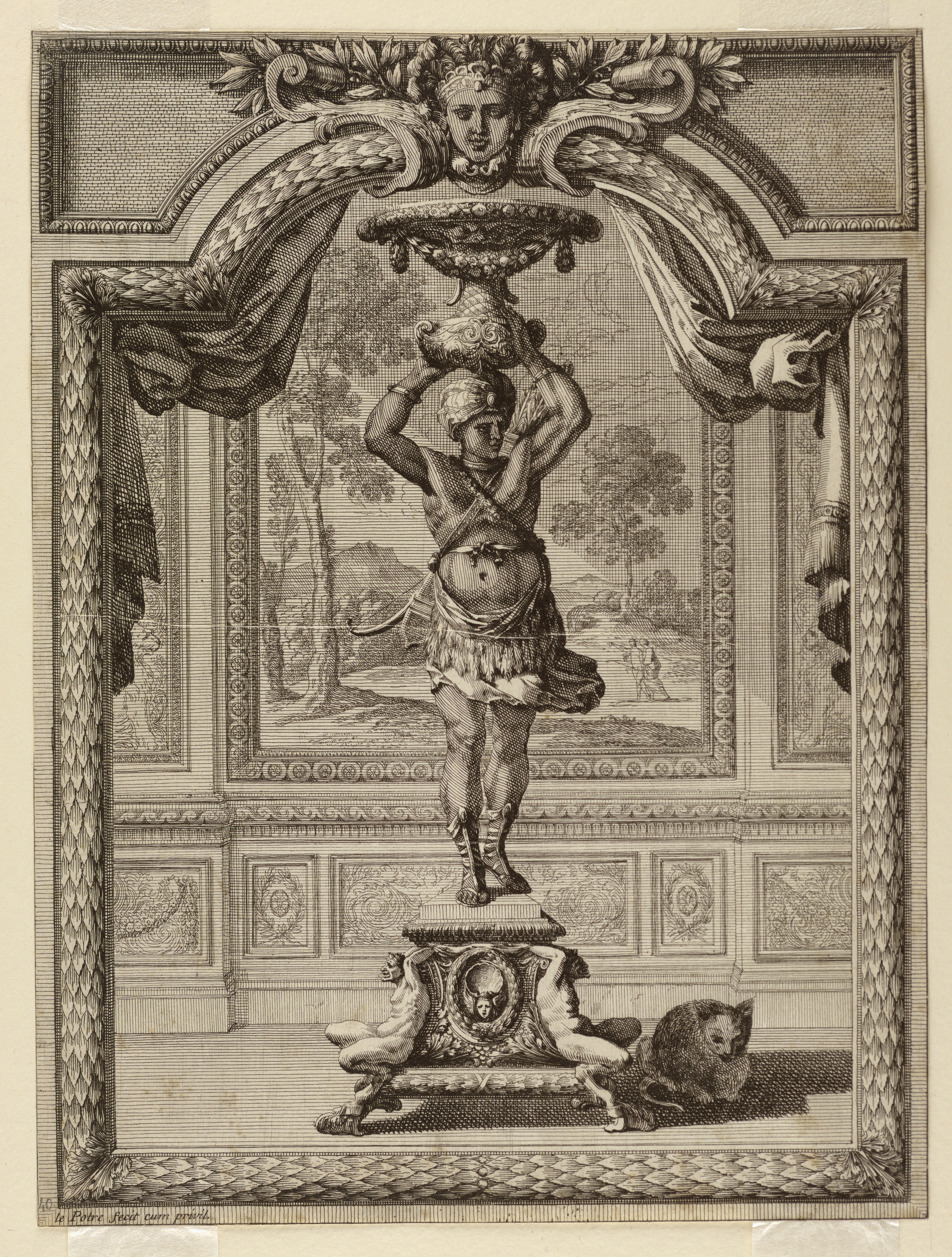 This is a Print. It was designed by Jean Le Pautre. It is dated ca. 1650 and we acquired it in 1920. Its medium is etching on white laid paper. It is a part of the Drawings, Prints, and Graphic Design department.