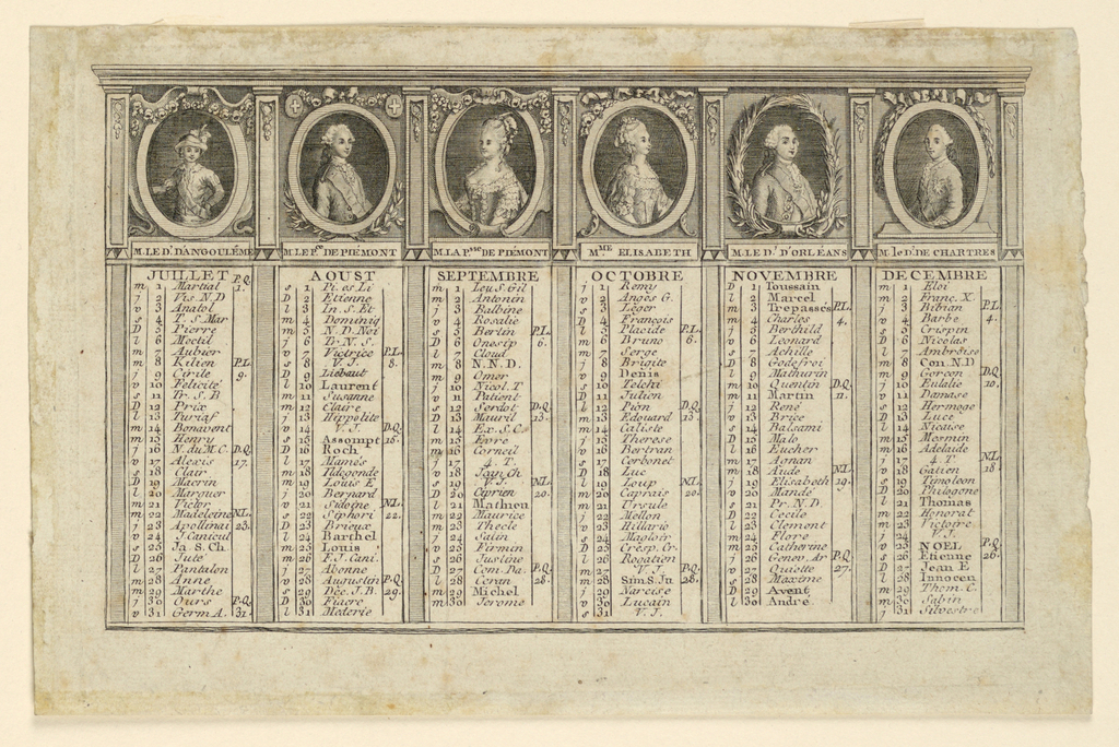 Print, Almanac for the Second Half of the Year 1778; Designed by Louis-Joseph Mondhare (French, 1734–1799); engraving and etching on paper; H: 16.5 cm (6 1/2 in.); Purchased for the Museum by the Advisory Council; 1921-6-180