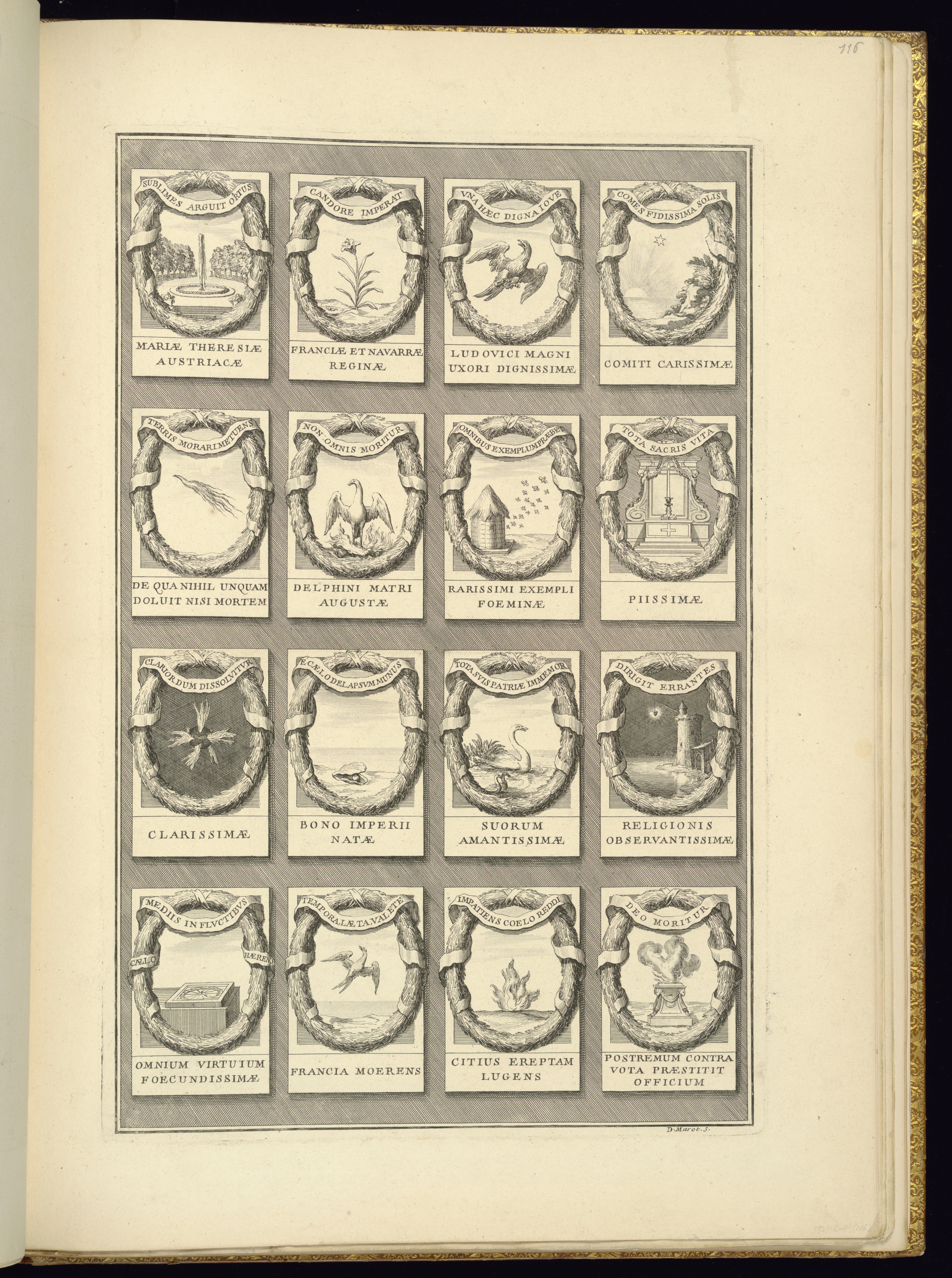 Bound Print, Devices; Designed by Jean Bérain the Elder (French, 1640–1711); Print Maker: Daniel Marot (French, active in the Netherlands and England, 1661–1752); Published by Jacques Thuret (French, 1669–1738); France; engraving on laid paper; Purchased for the Museum by the Advisory Council; 1921-6-201-116