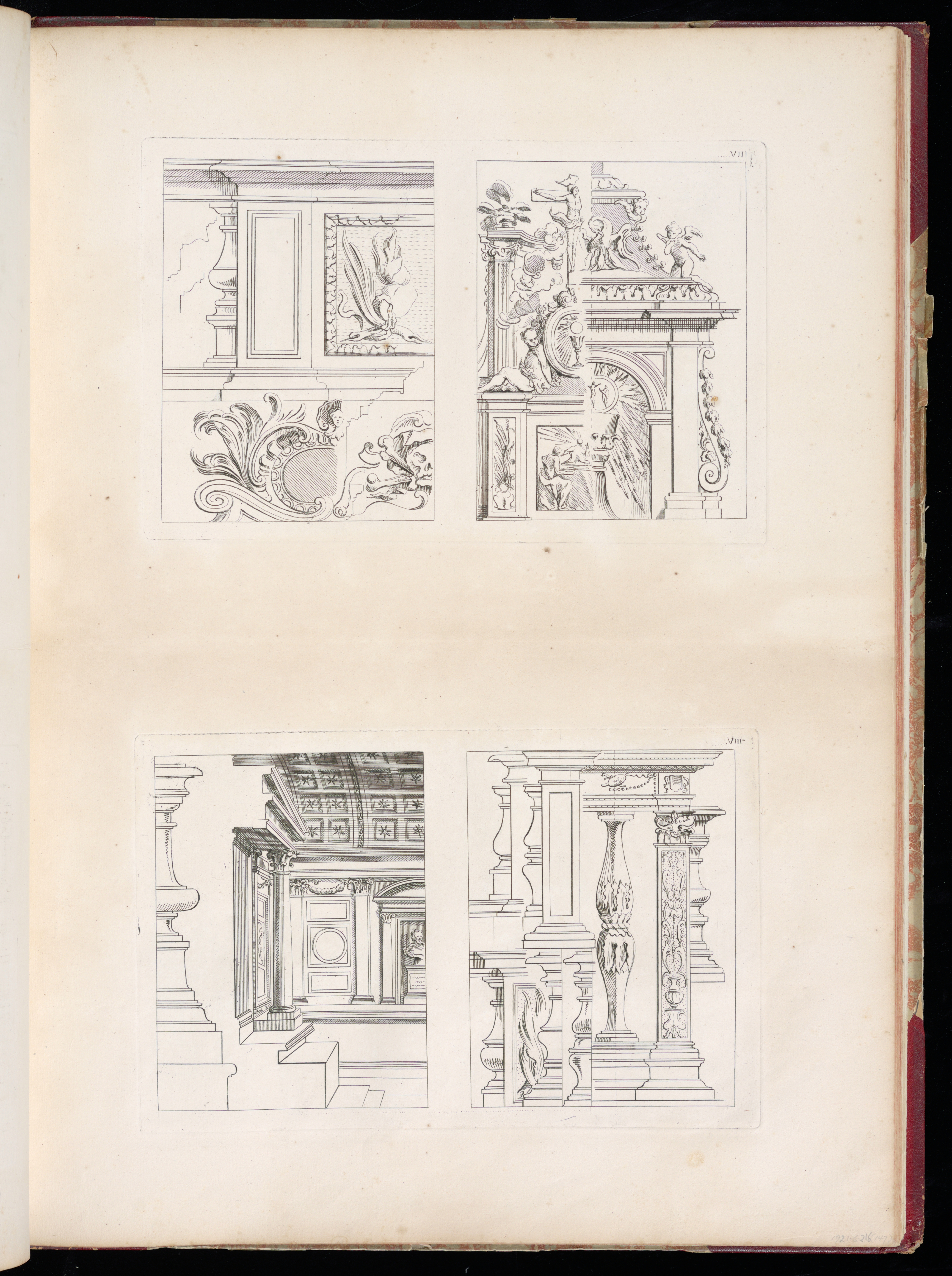 Bound Print, Designs After Architecture; Designed by Gilles-Marie Oppenord (French, 1672–1742); Print Maker: Gabriel Huquier (French, 1695–1772); Published by Chez Huquier; France; etching and engraving on laid paper; Purchased for the Museum by the Advisory Council; 1921-6-216-147