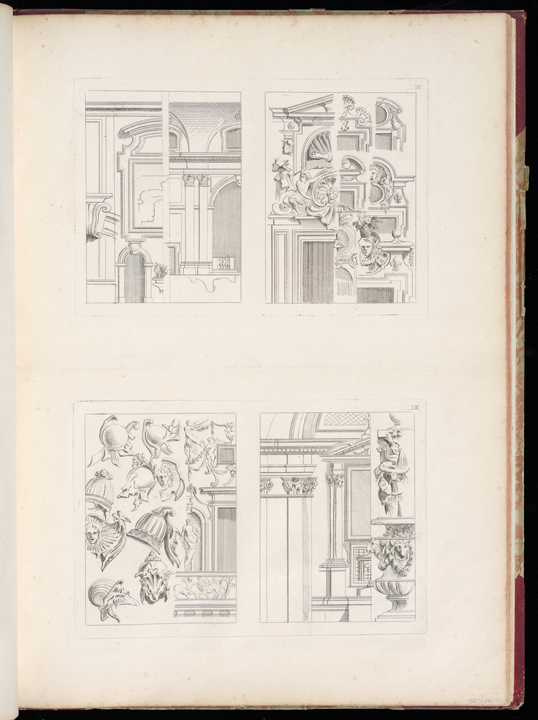 Bound Print, Designs After Architecture; Designed by Gilles-Marie Oppenord (French, 1672–1742); Print Maker: Gabriel Huquier (French, 1695–1772); Published by Chez Huquier; France; etching and engraving on paper; Purchased for the Museum by the Advisory Council; 1921-6-216-150