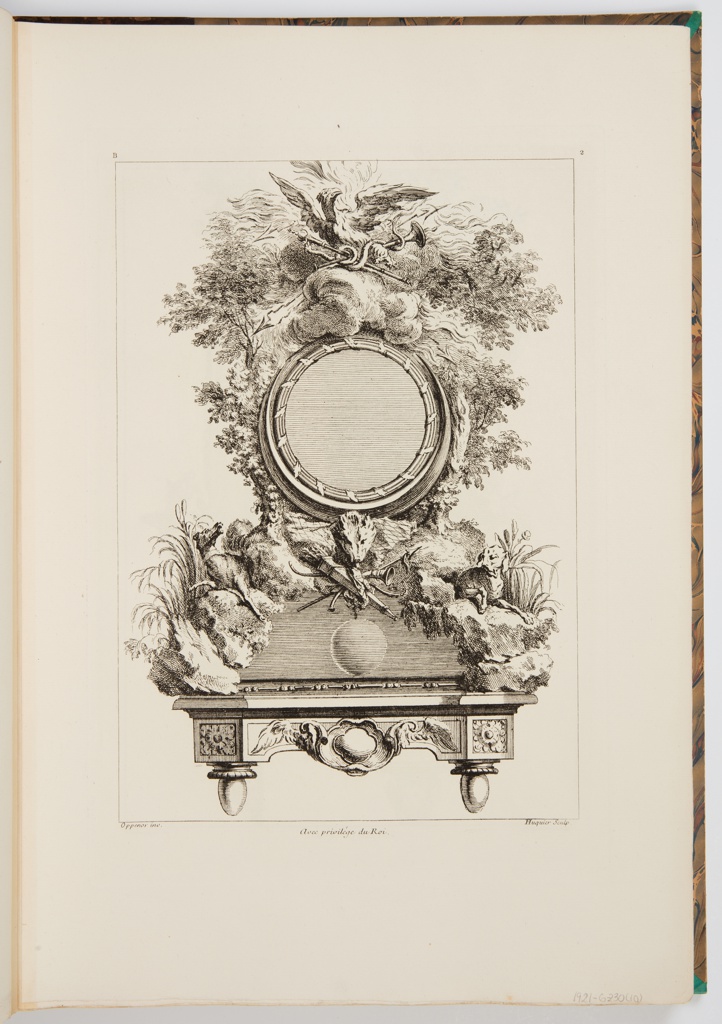 Printed upper left, in plate: B; Printed upper right, in plate: 2; Printed lower center, in plate: Avec privilége du Roi.; Inscribed in graphite, lower right, in margin: 1921-6-230(10)